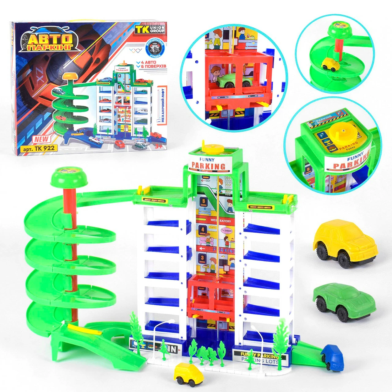 - спирального спуска с крыши до первого этажа, чтобы долго не стоят в очереди к лифту. В комплекте идет четыре разноцветные машинки и дополнительные игровые аксессуары. Игра в паркинг Kimi станет еще интересней за счет подвижных деталей, а отличная детализация и качественные материалы увлекут ребенка в многочасовой игре без опасности для его здоровья.