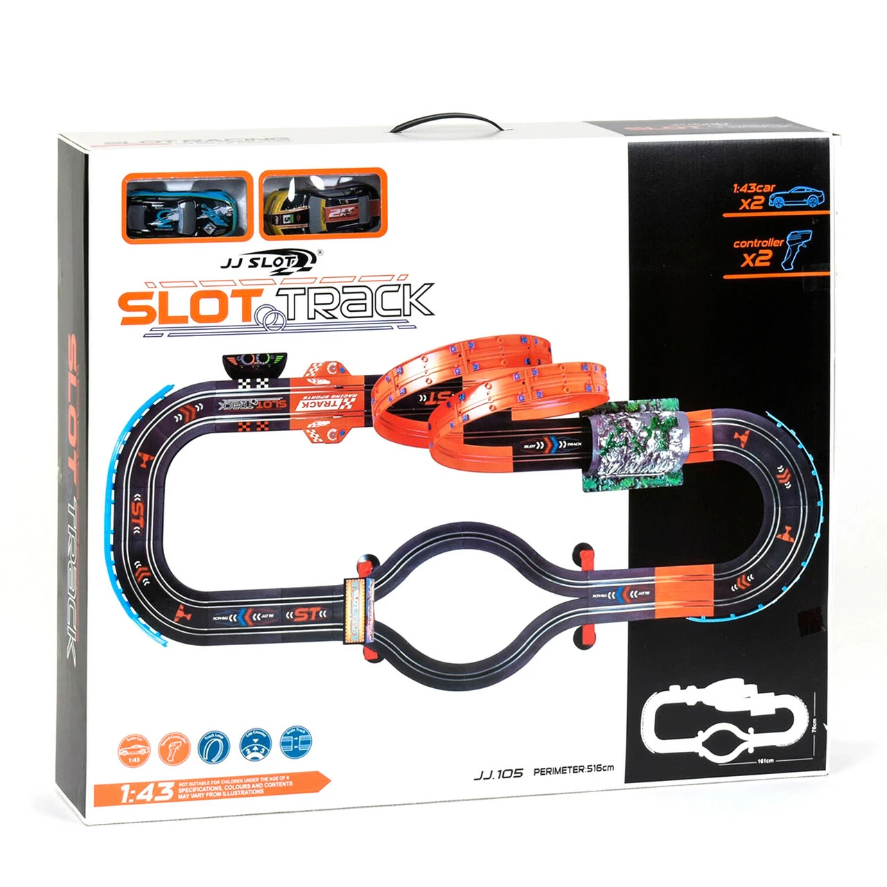 Для функционирования трассы правильно расположите машинку на трассе и подключите пульт д/у управления в разъем, соответствующий выбранной полосе движения. Габариты собранного трека: 161х70 см. Длина трассы 516 см. Ширина трассы: 11,2 см. Длина машинки: 10,5 см. Всего в наборе 170 элементов: