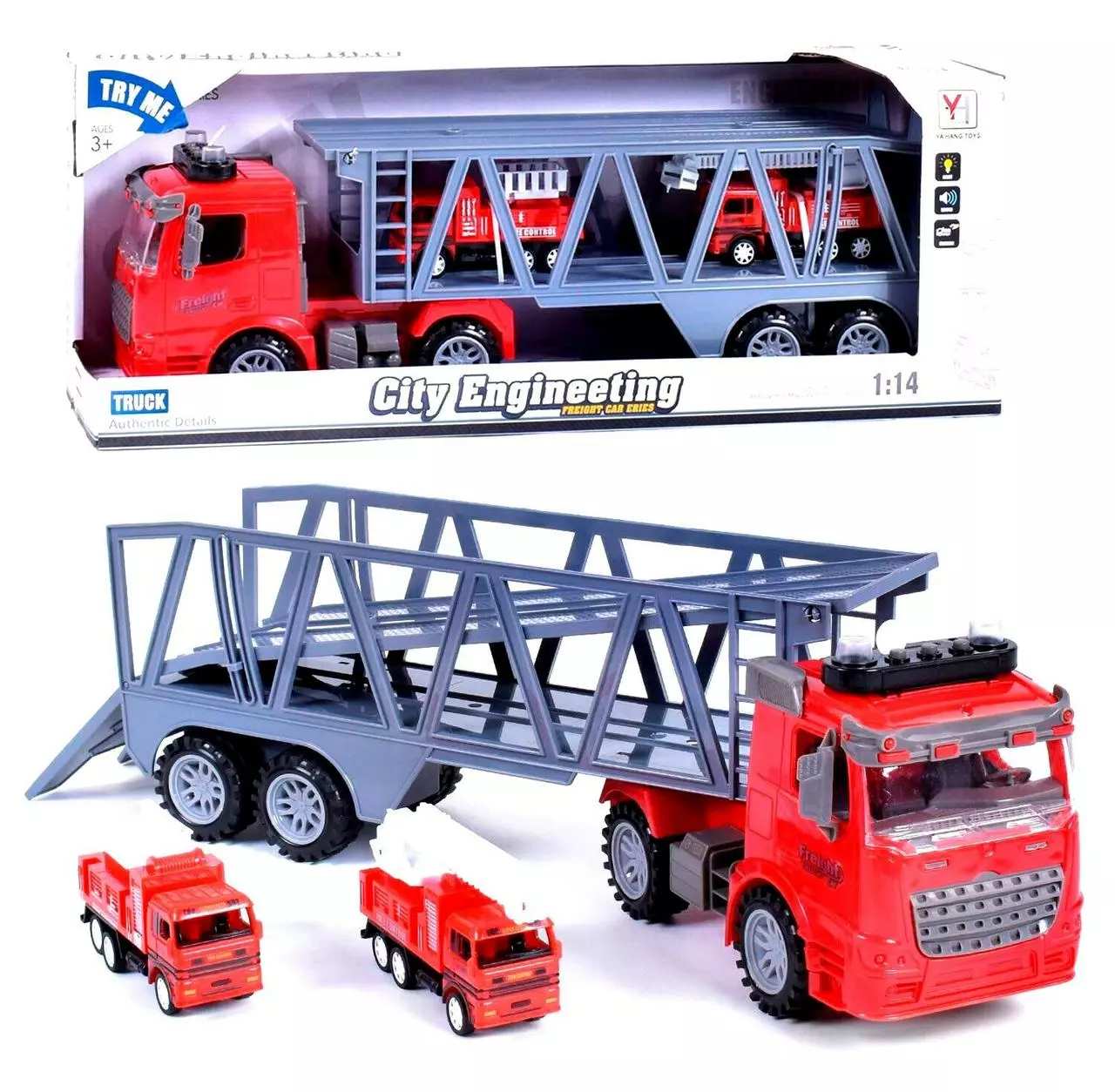 Автовоз с спецтехниками Kimi со световым и звуковым эффектом Красный 6965095112684