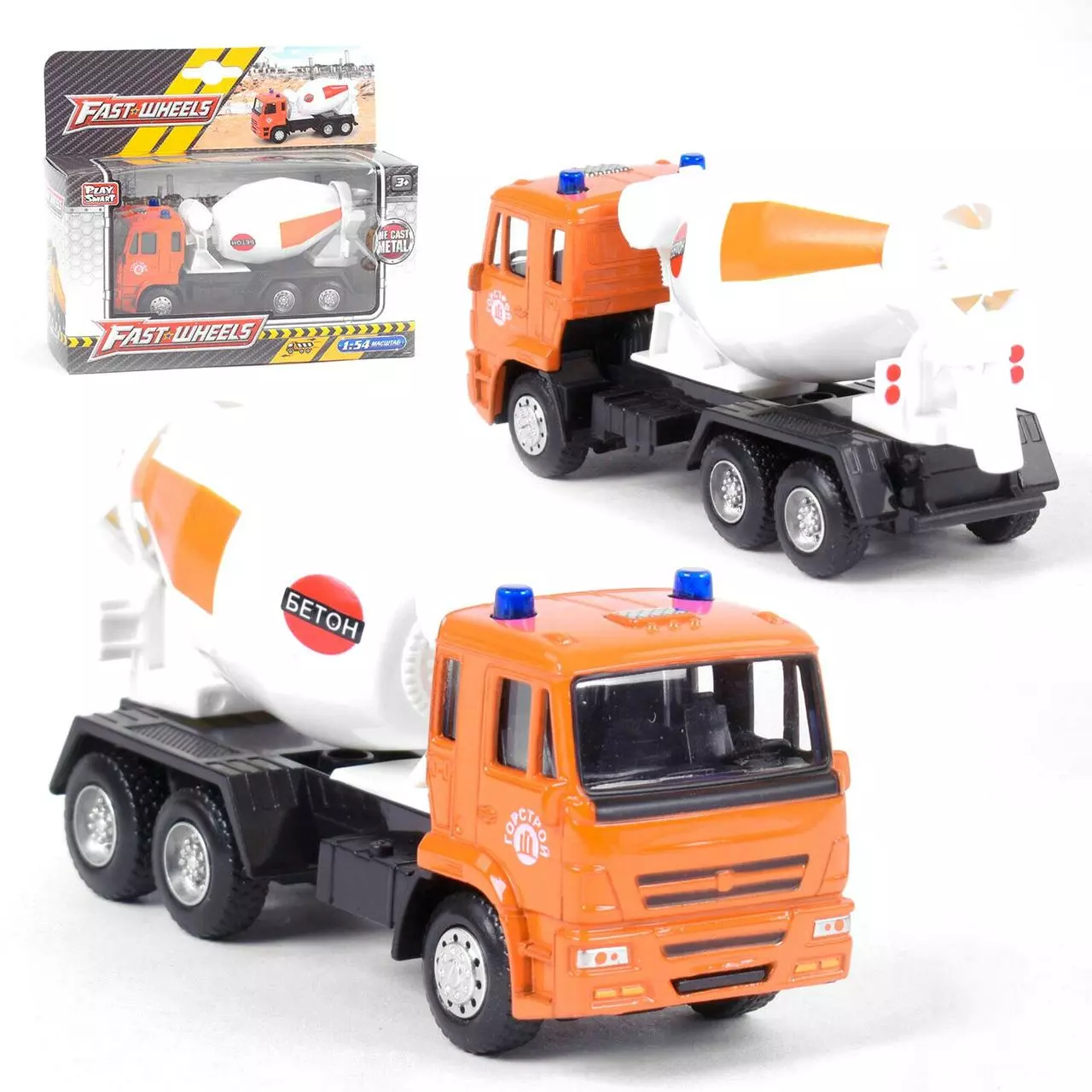 Бетоновоз металлопластиковый Kimi с инерционным механизмом Бело-оранжевый 6988600091106