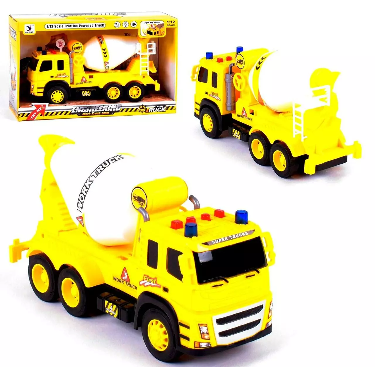 Бетоновоз с инерционным механизмом Kimi со световым и звуковым эффектом Желтый 6977524111441