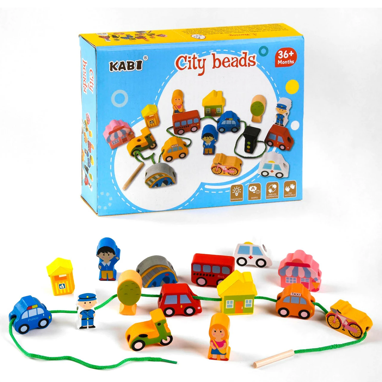 Деревянная Шнуровка Город Kimi Разноцветный 6900067479624