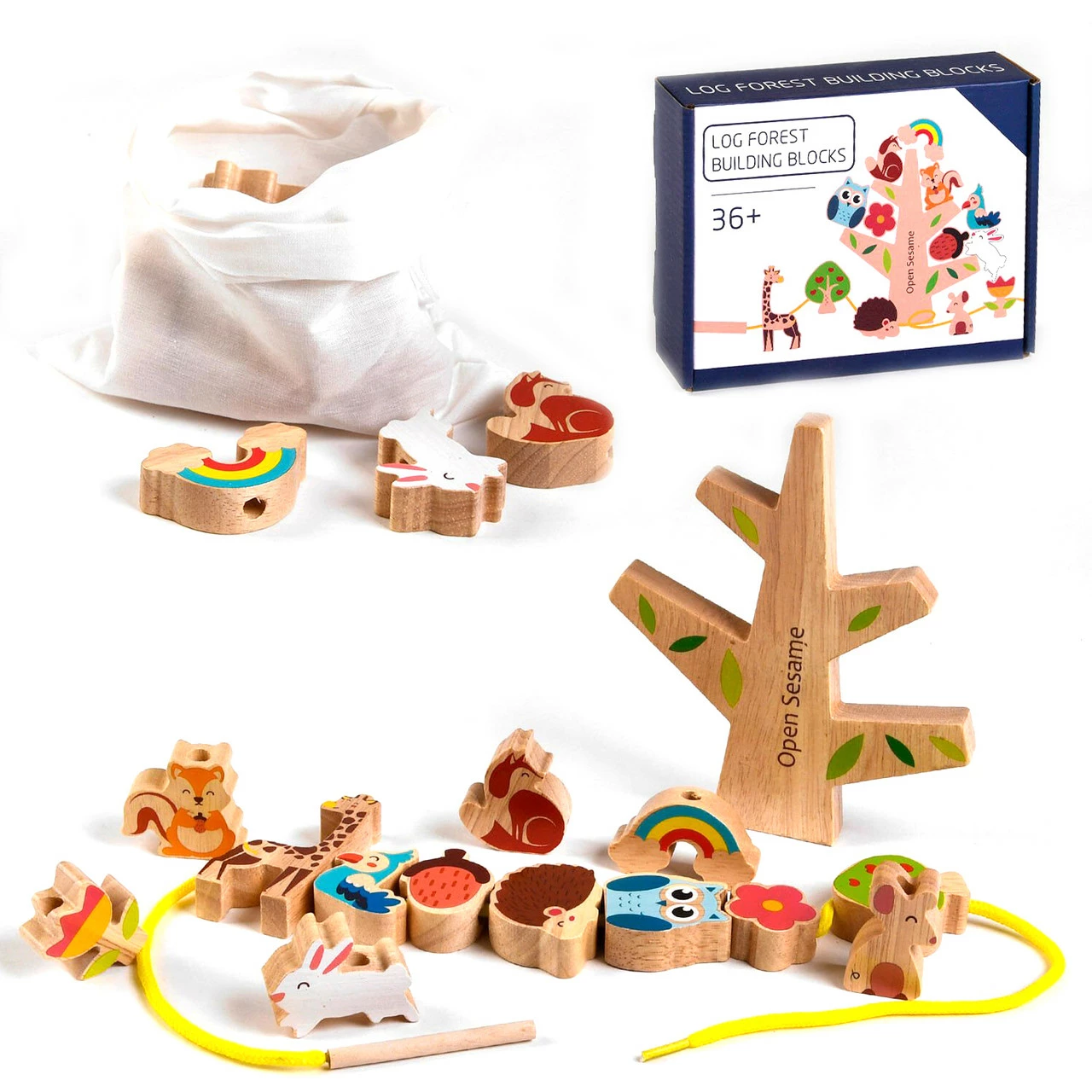 желудь. Все детали игрушки выполнены из экологически чистых материалов - древесины, которая окрашена яркими безопасными красками и покрыта лаком. Также в набор входит специальный мешочек для компактного хранения настольной игры. Длина шнурка - 67.5 см. Комплектация набора: