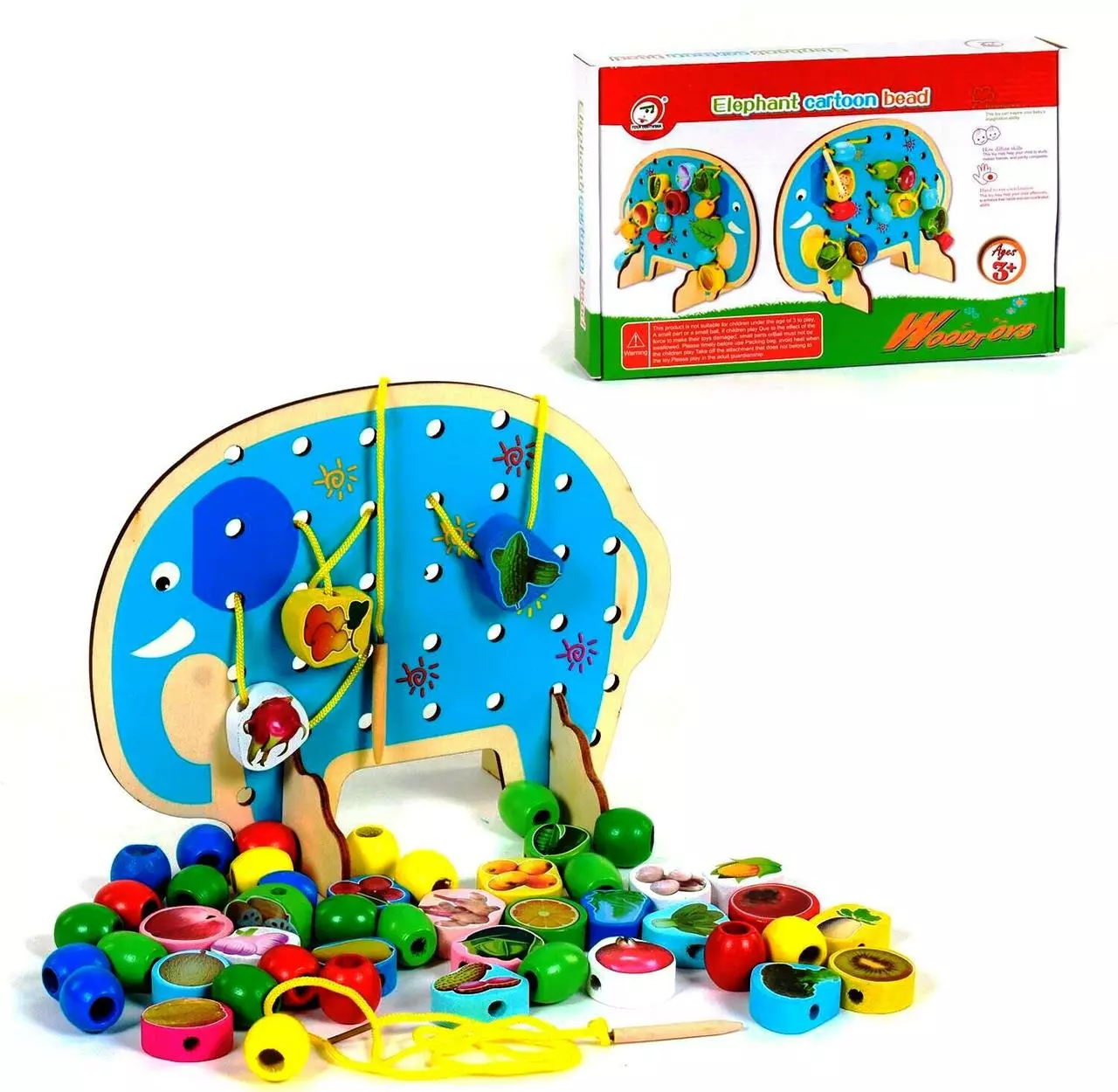 Деревянная шнуровка Слоник Kimi разноцветная 81548048