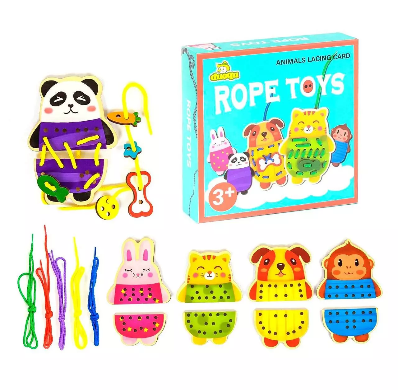 В игровом наборе: шнурок и тематические фигурки животных. В каждой