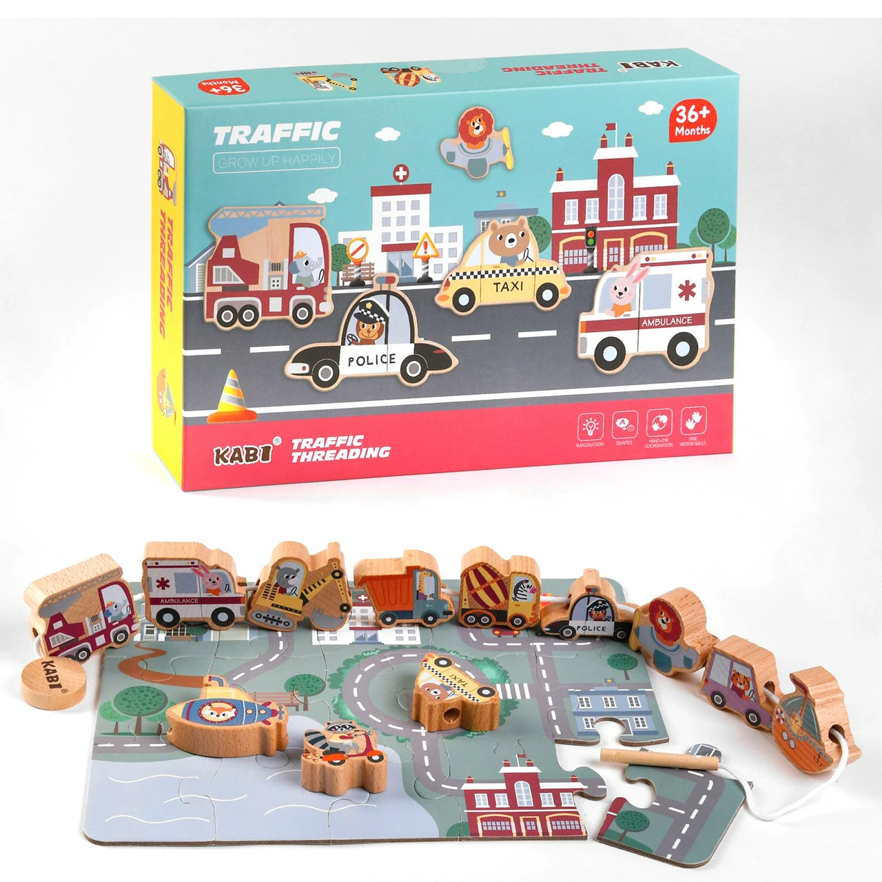 Деревянная Шнуровка Животные в транспорте Kimi Разноцветный 6900067478887