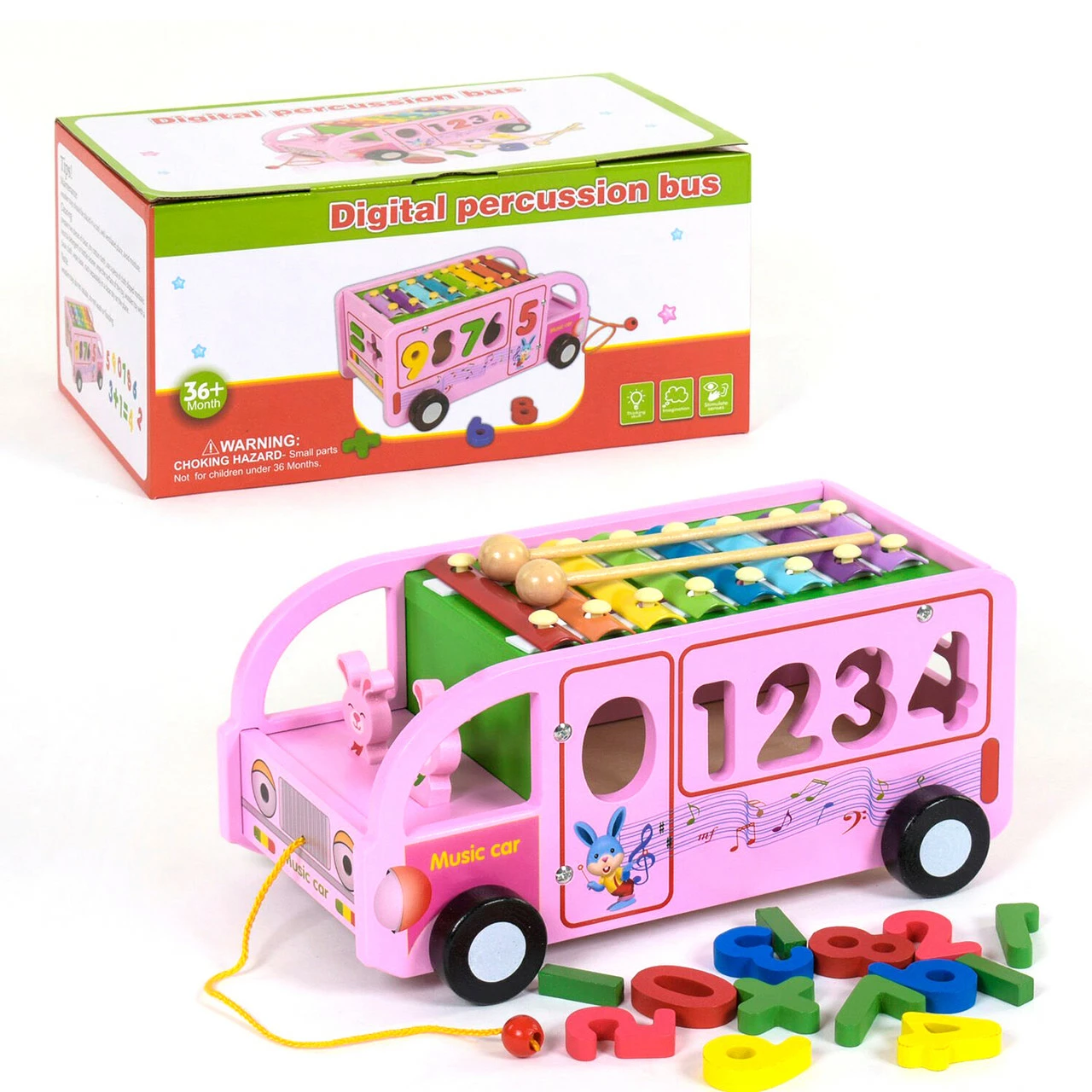 Деревянный автобус-сортер Kimi ксилофон Разноцветный 6900067392190