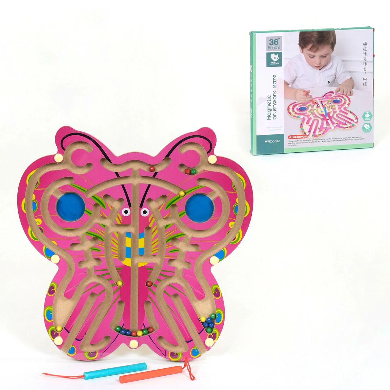 Деревянный магнитный лабиринт Kimi Бабочка Разноцветный 6900067399915
