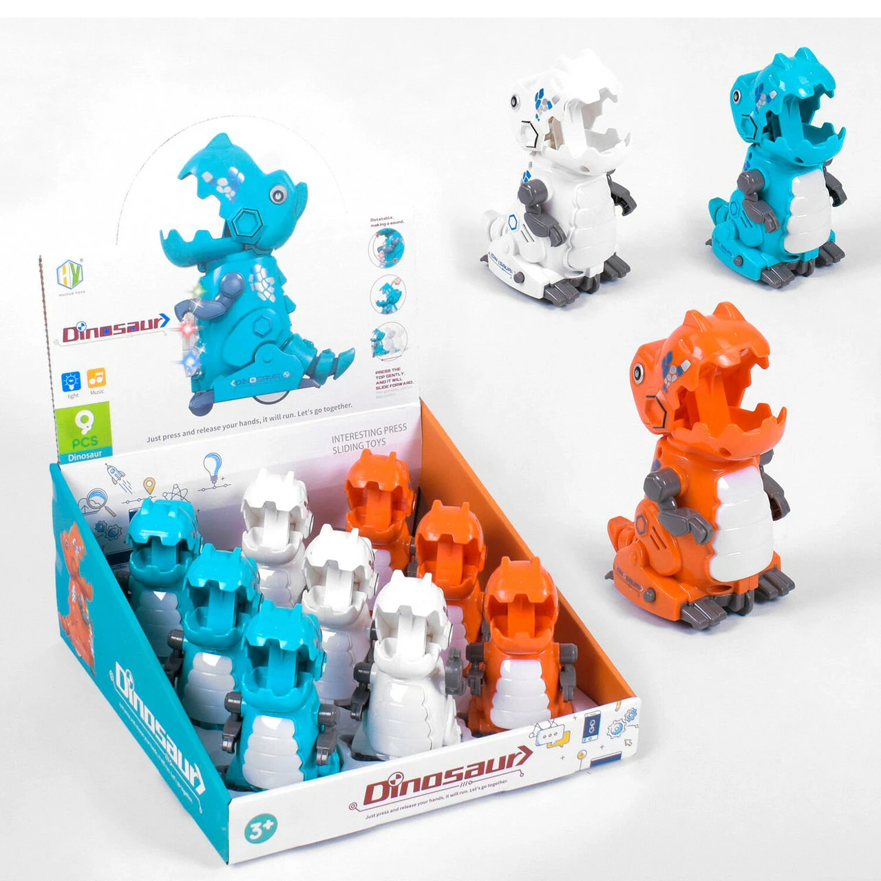 Динозавр заводной 9 шт Kimi со световым и звуковым эффектом Разноцветный 6973043100188