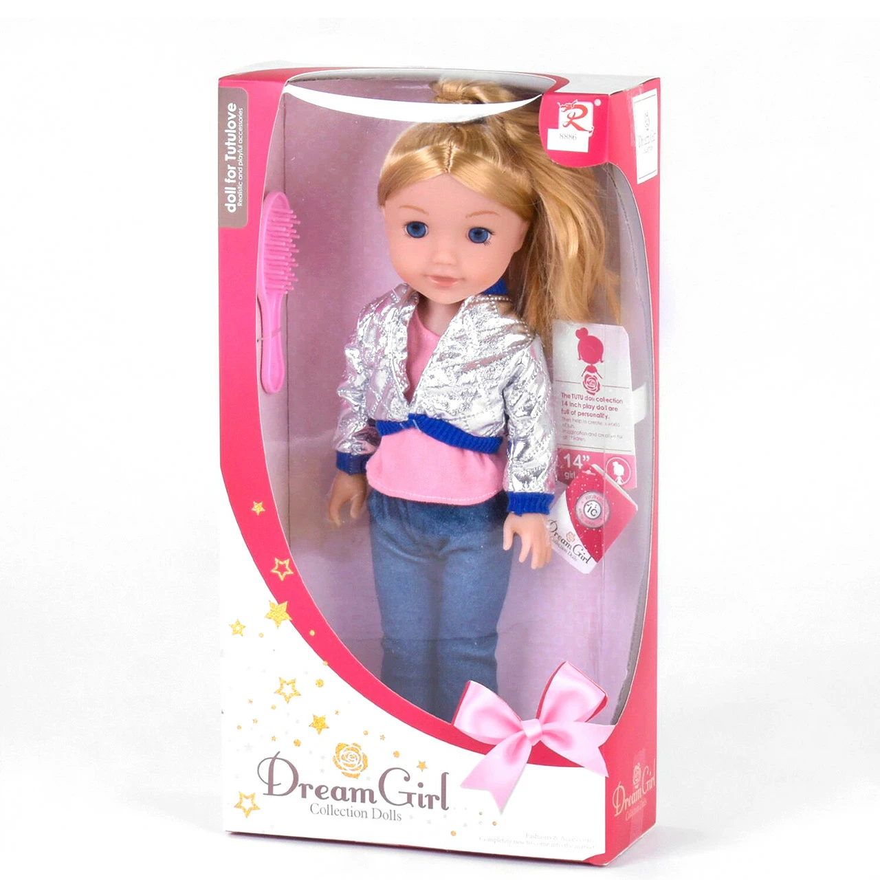 голубые глаза. Ручки и ножки куклы подвижны, что делают игру с ней