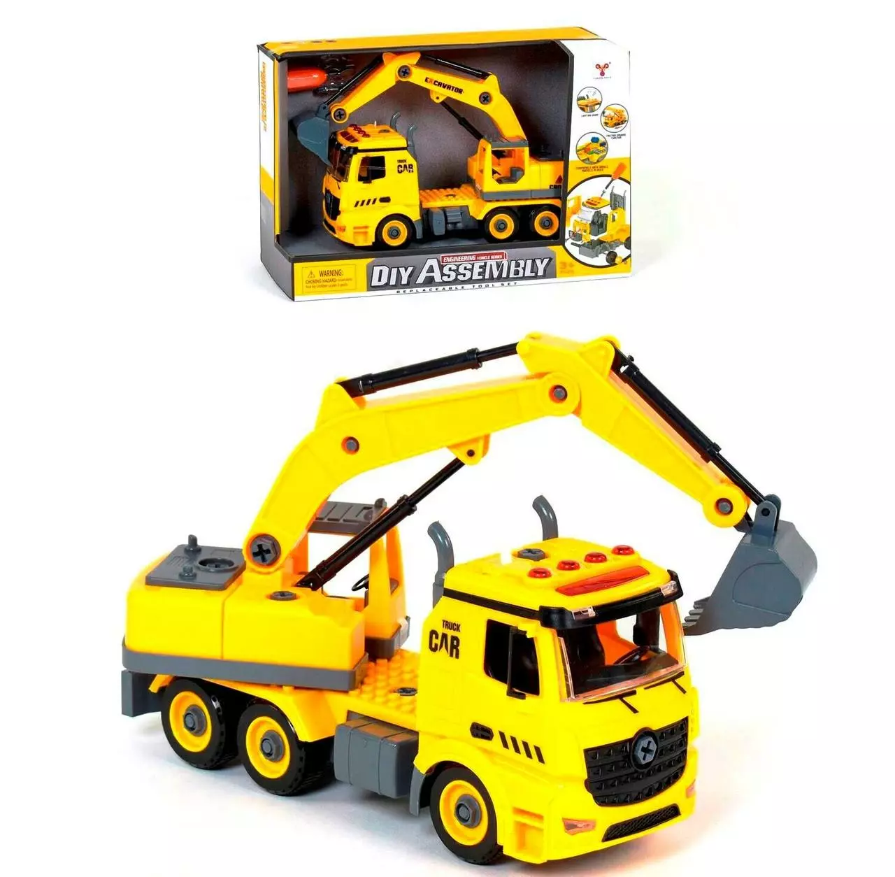 Грузовик-экскаватор Конструктор с инерционным механизмом Kimi со световым и звуковым эффектом Желтый