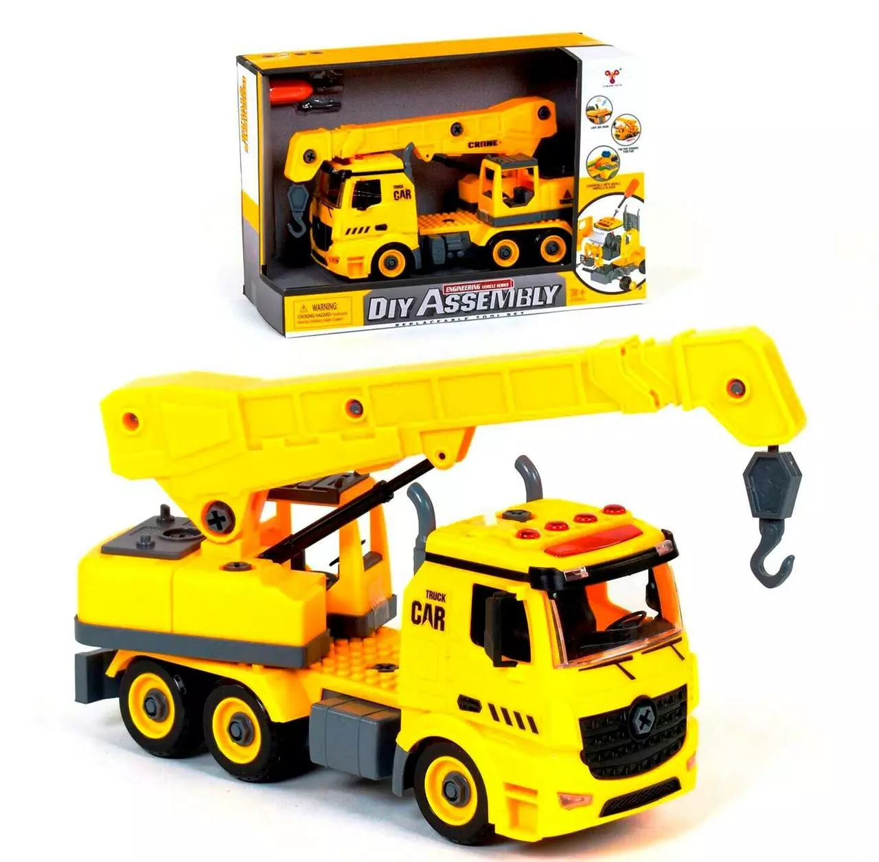 Грузовик-кран Конструктор с инерционным механизмом Kimi со световым и звуковым эффектом Желтый 6978315260010