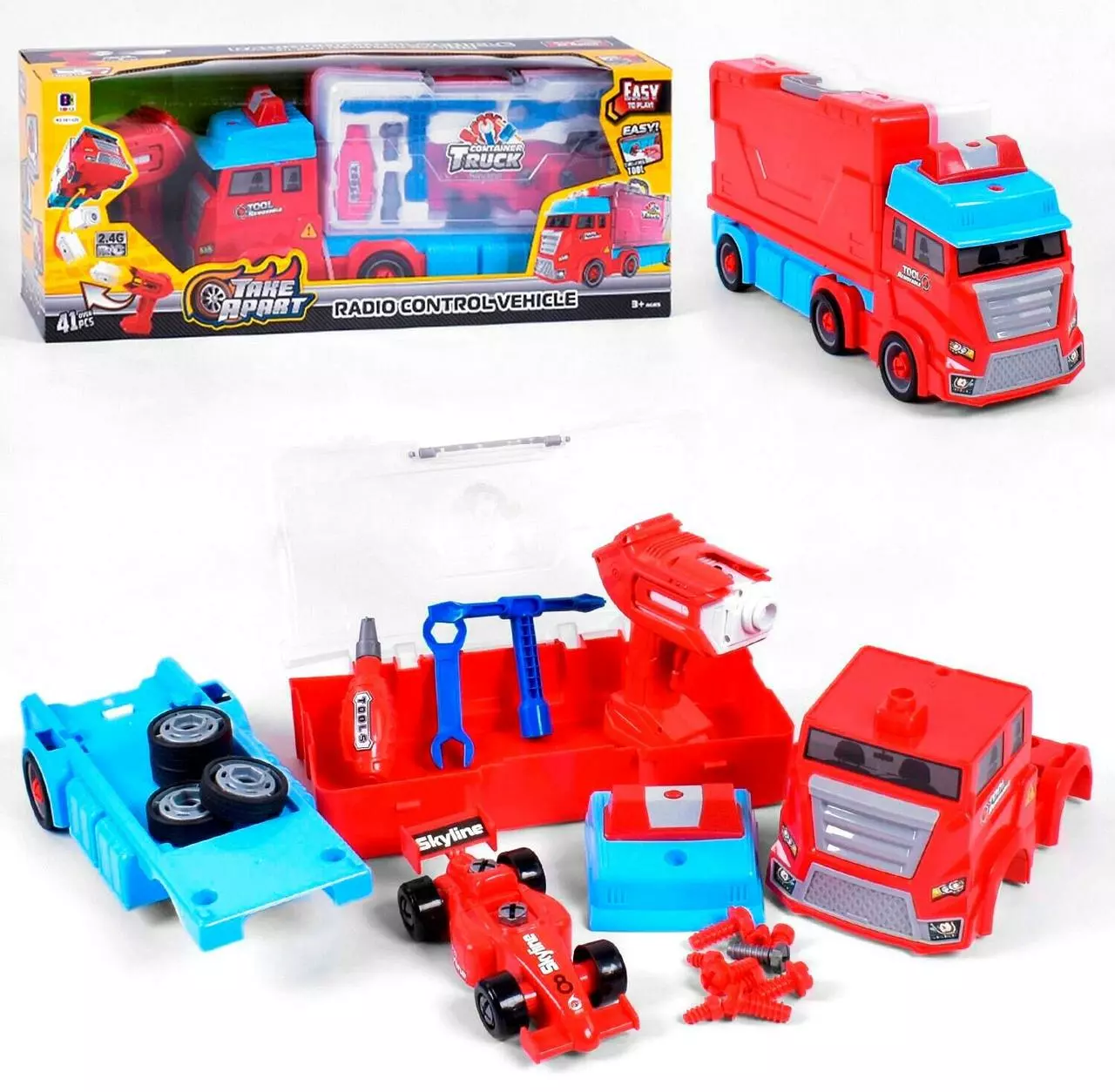 Грузовик на радиоуправлении Конструктор Шуруповерт Чемодан Звук Подсветка Красный 6974210080012