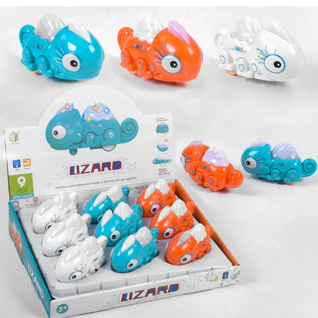 Хамелеон заводной 9 шт Kimi со световым и звуковым эффектом Разноцветный 6973043100171