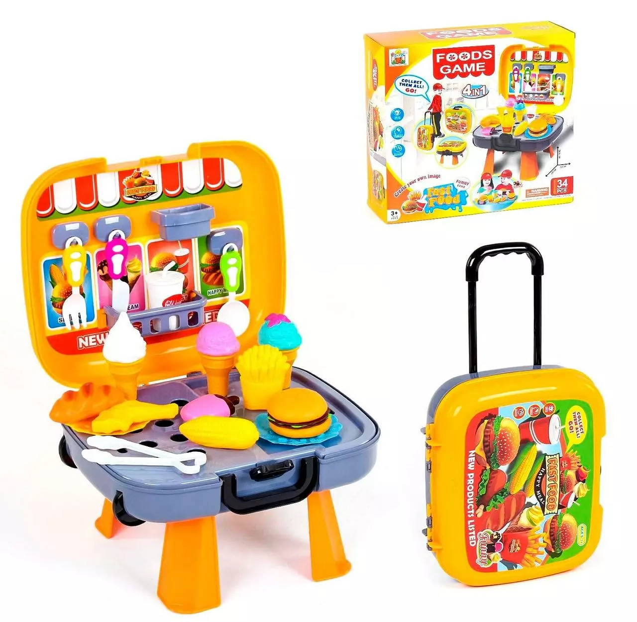 Игровой набор фастфуд в чемодане Kimi 34 предмета желтый 69979048