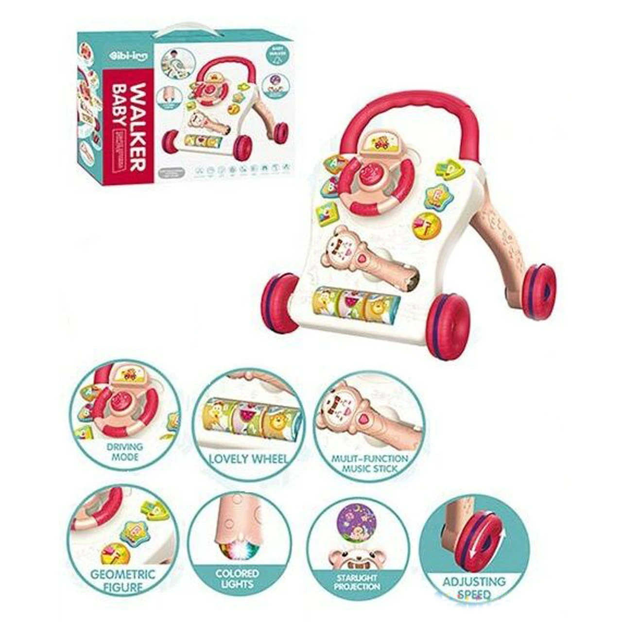 ускорятся. Каталка-толкалка оснащена 4 элементами игры: