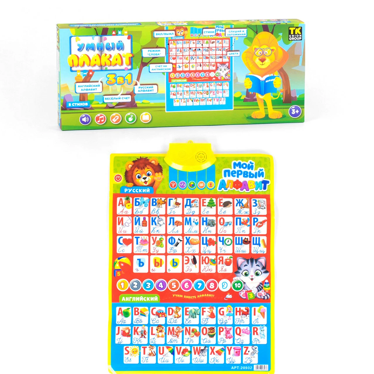 • экзамен для закрепления материала. Громкость звука в интерактивном плакате регулируется до нужного уровня. Это поможет отрегулировать громкость для каждого ребенка индивидуально, что дополнительно обезопасит его слух и эмоциональное состояние. Специальное крепление на задней стороне азбуки позволяет разместить игру на столе или повесить на стену в детской комнате. Выполнен плакат из полимерных материалов. Интерактивный плакат оснащен сенсорными кнопками, а также влагоустойчивой поверхностью, которая продлить срок его службы. Интерфейс игрушки на русском языке. Работает от 3- х батареек типа "ААА" (не входят в комплект).