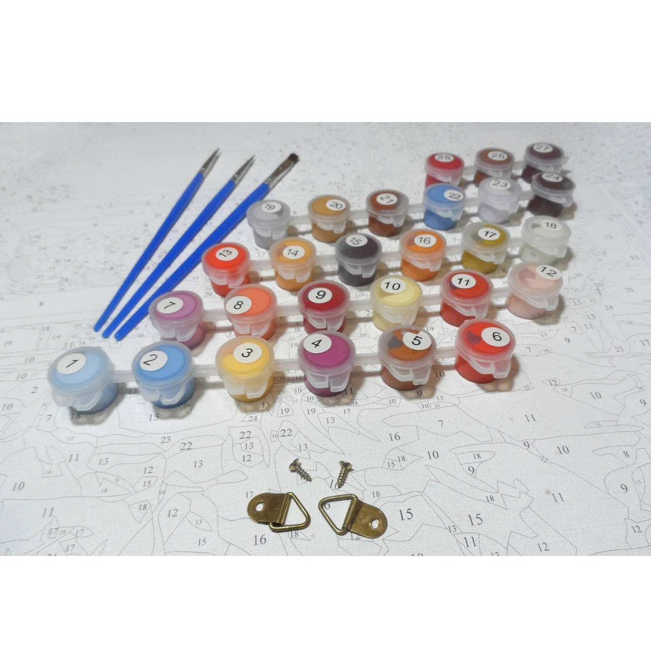 краски в пронумерованных баночках;