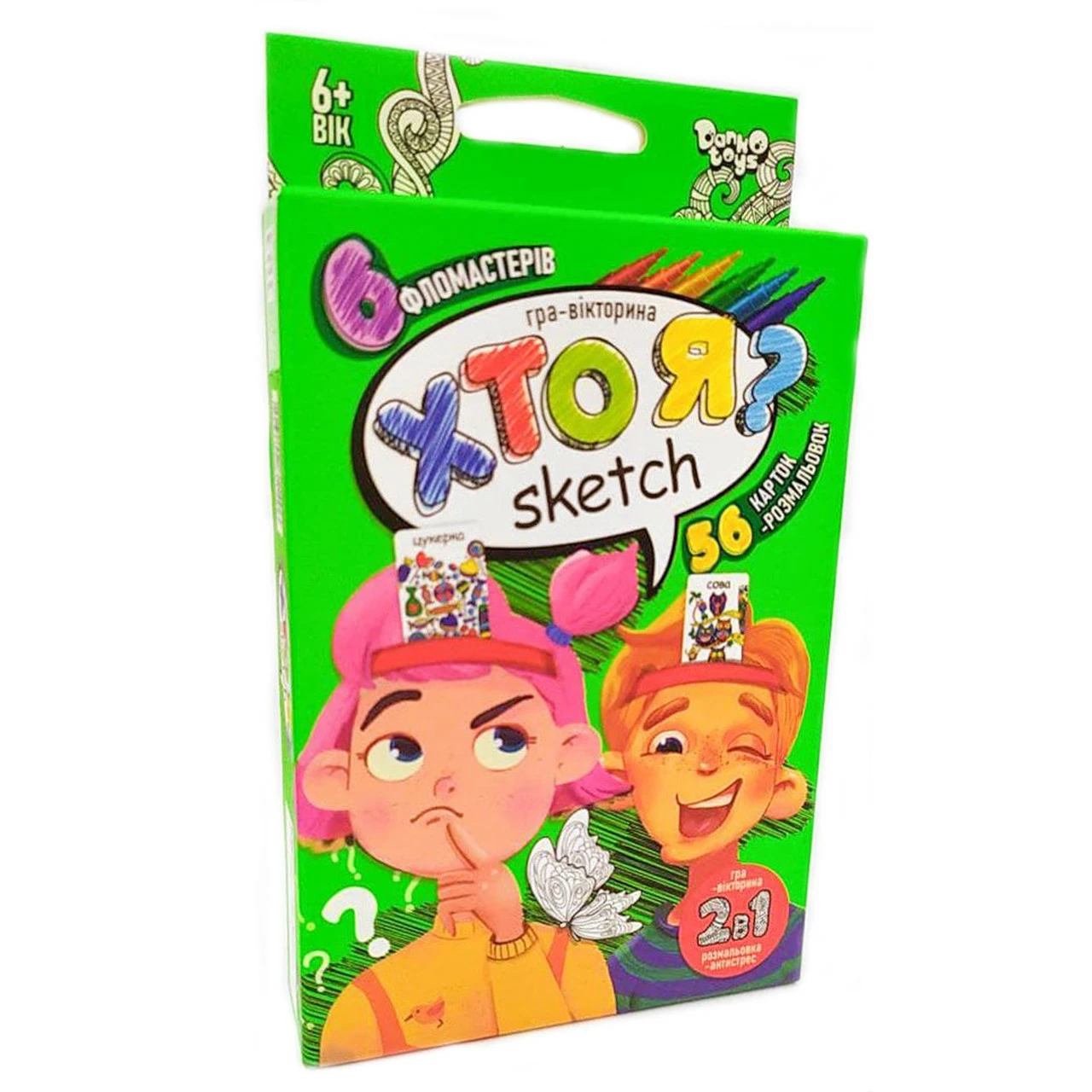 участникам. В комплекте: 56 карточек-разукрашек, и 6 фломастеров