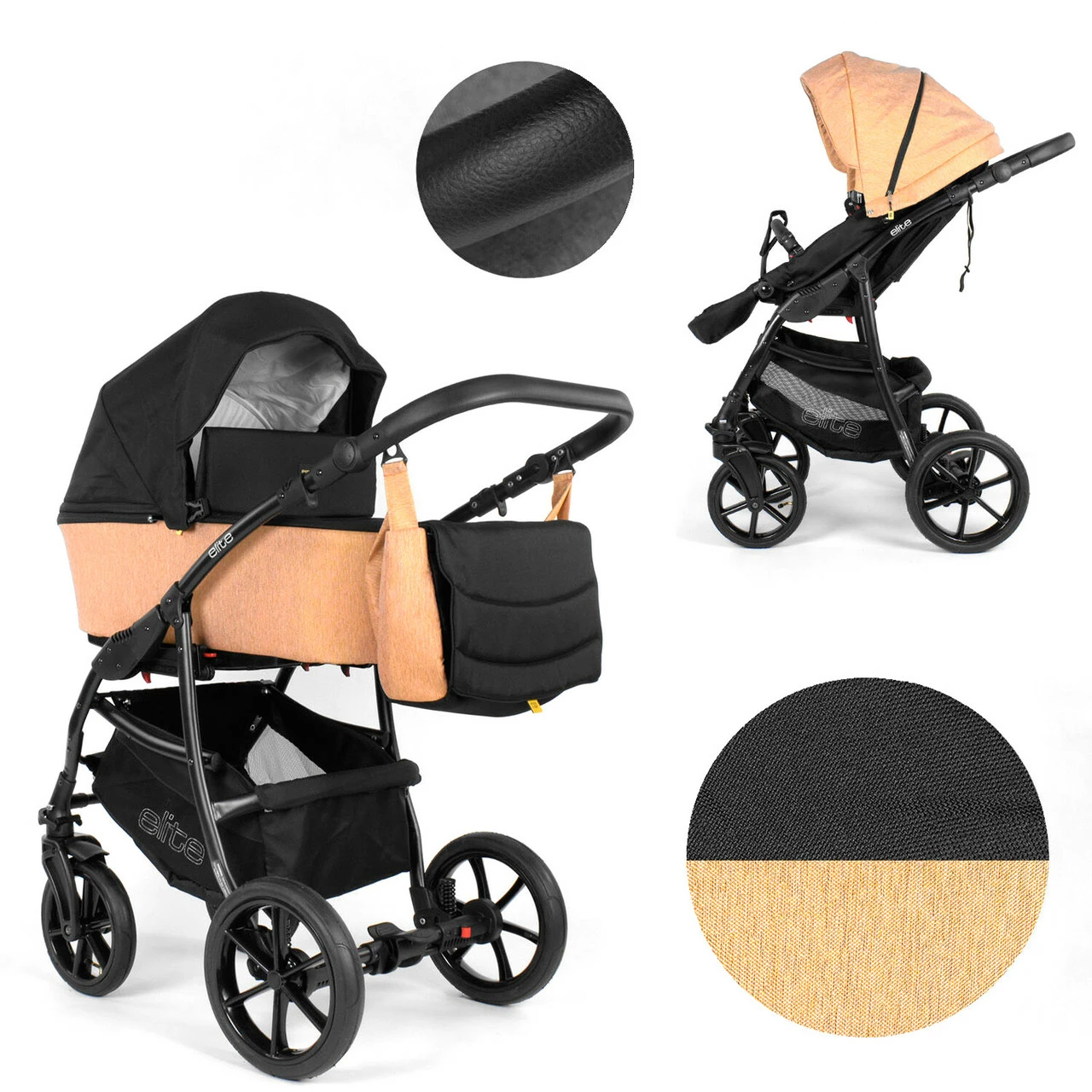 Коляска 2 в 1 ткань с водоотталкивающей пропиткой Expander Черно-бежевая 2000000035260