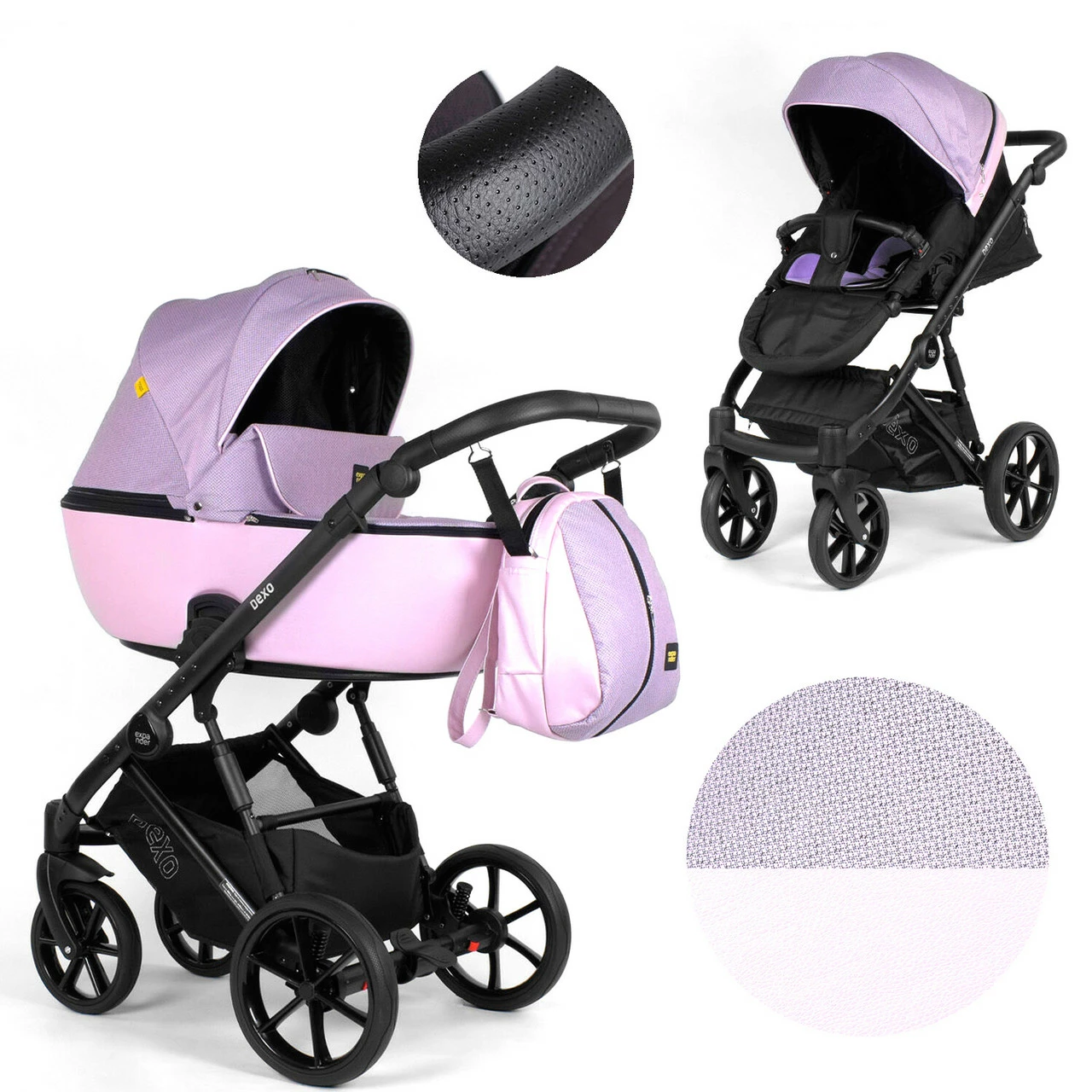 Коляска 2 в 1 водоотталкивающая ткань + эко-кожа Expander Розовая 2000000035222