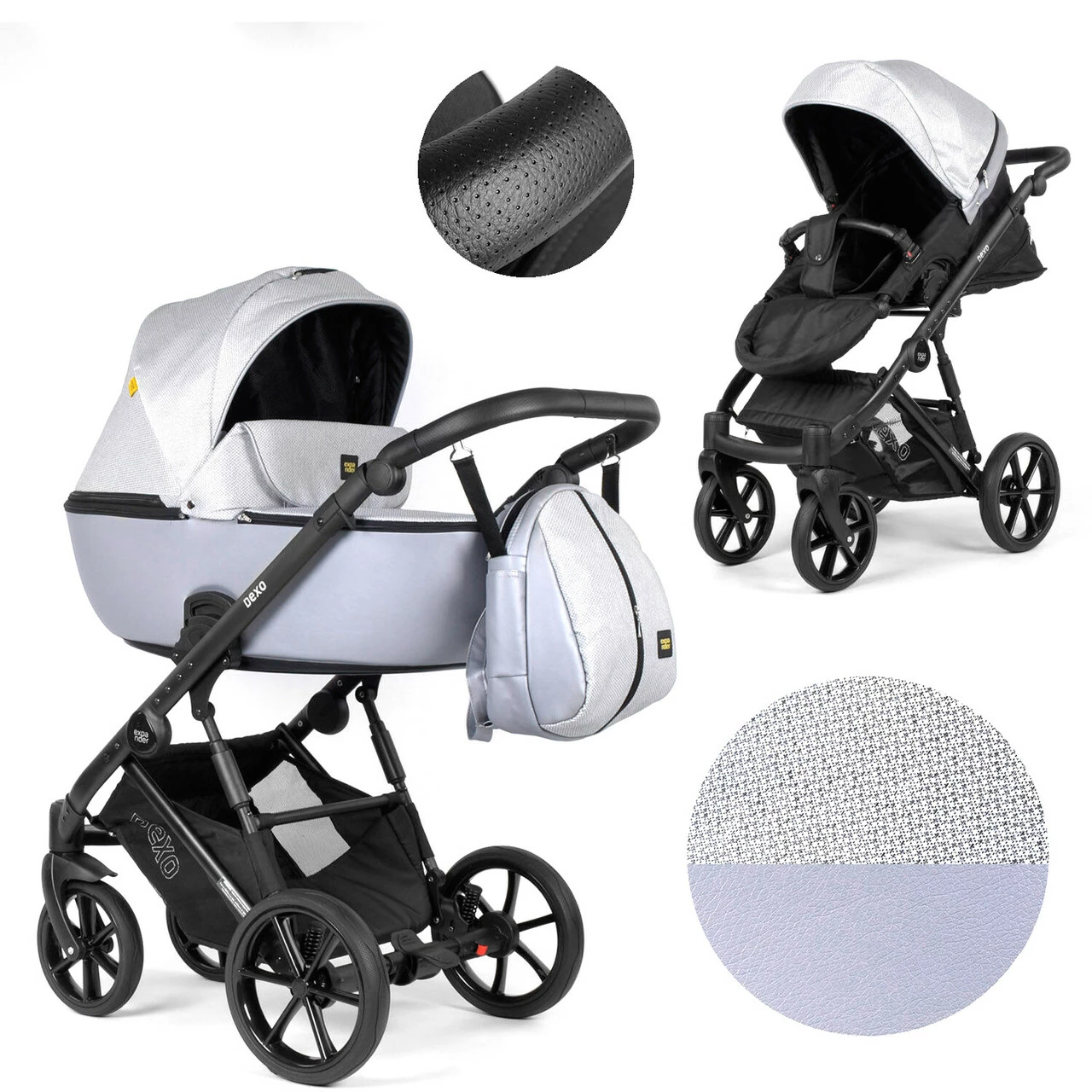 Коляска 2 в 1 водоотталкивающая ткань + эко-кожа Expander Серая 2000000035215