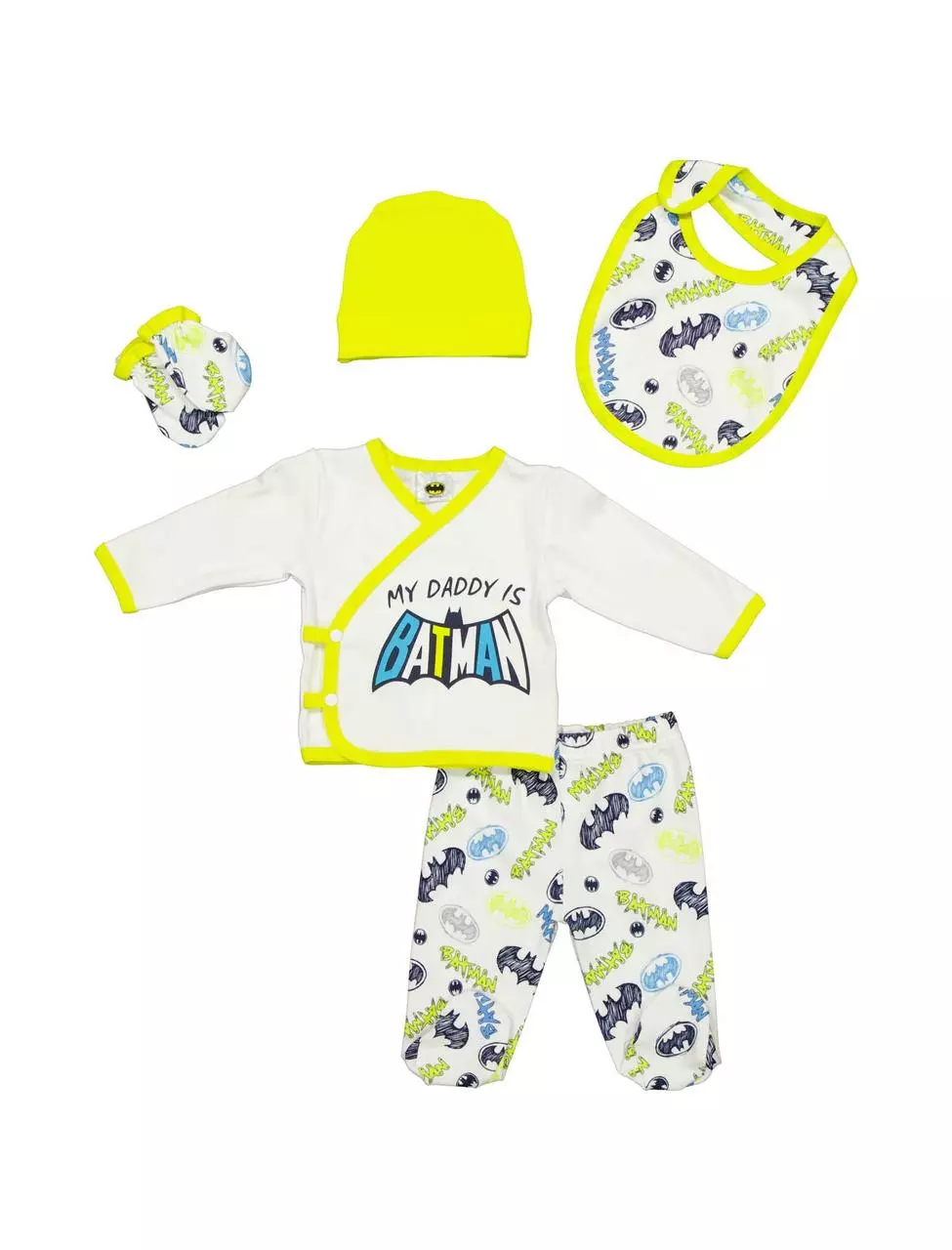 Комплект 5 вещей Batman 56-62 см (0-3 мес) Cimpa BM17435 Бело-желтый 8691109874153