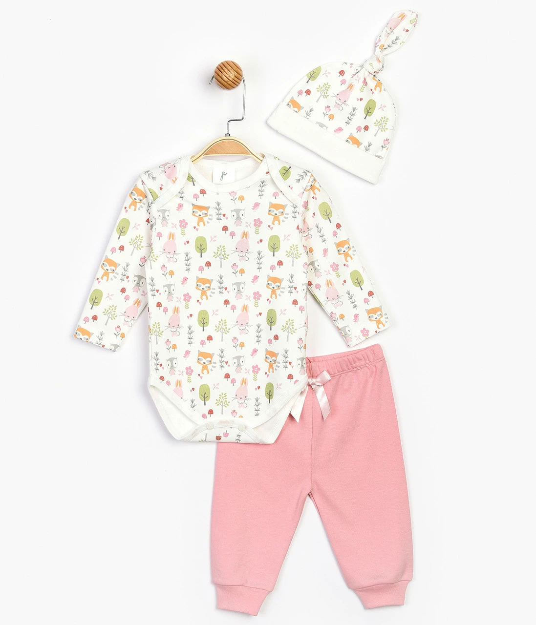 Костюм (боди, штаны, шапка) 80-86 см (12-18 мес) Panolino PL16482 Бело-розовый 8691109832757