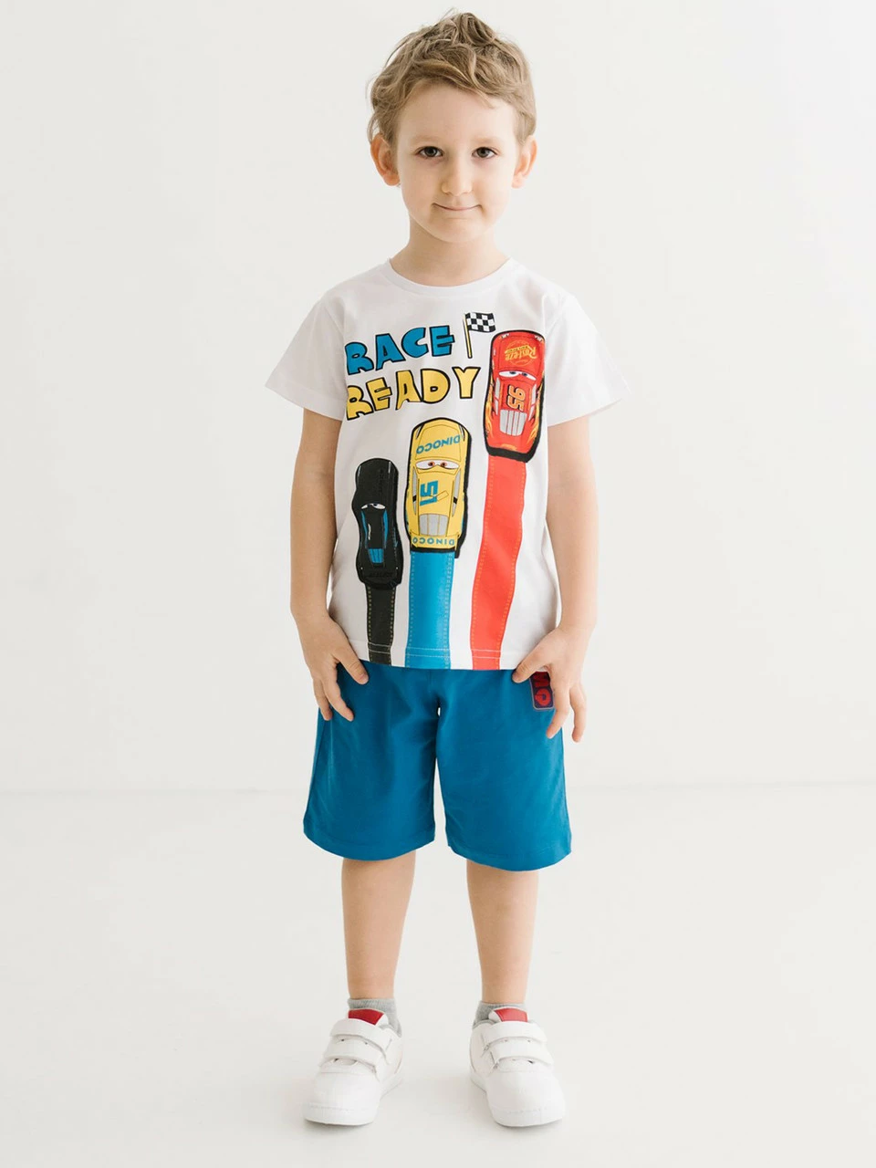 Костюм (футболка, шорты) Cars Pixar 98 см (3 года) Cimpa CR17588 Бело-синий 8691109887344