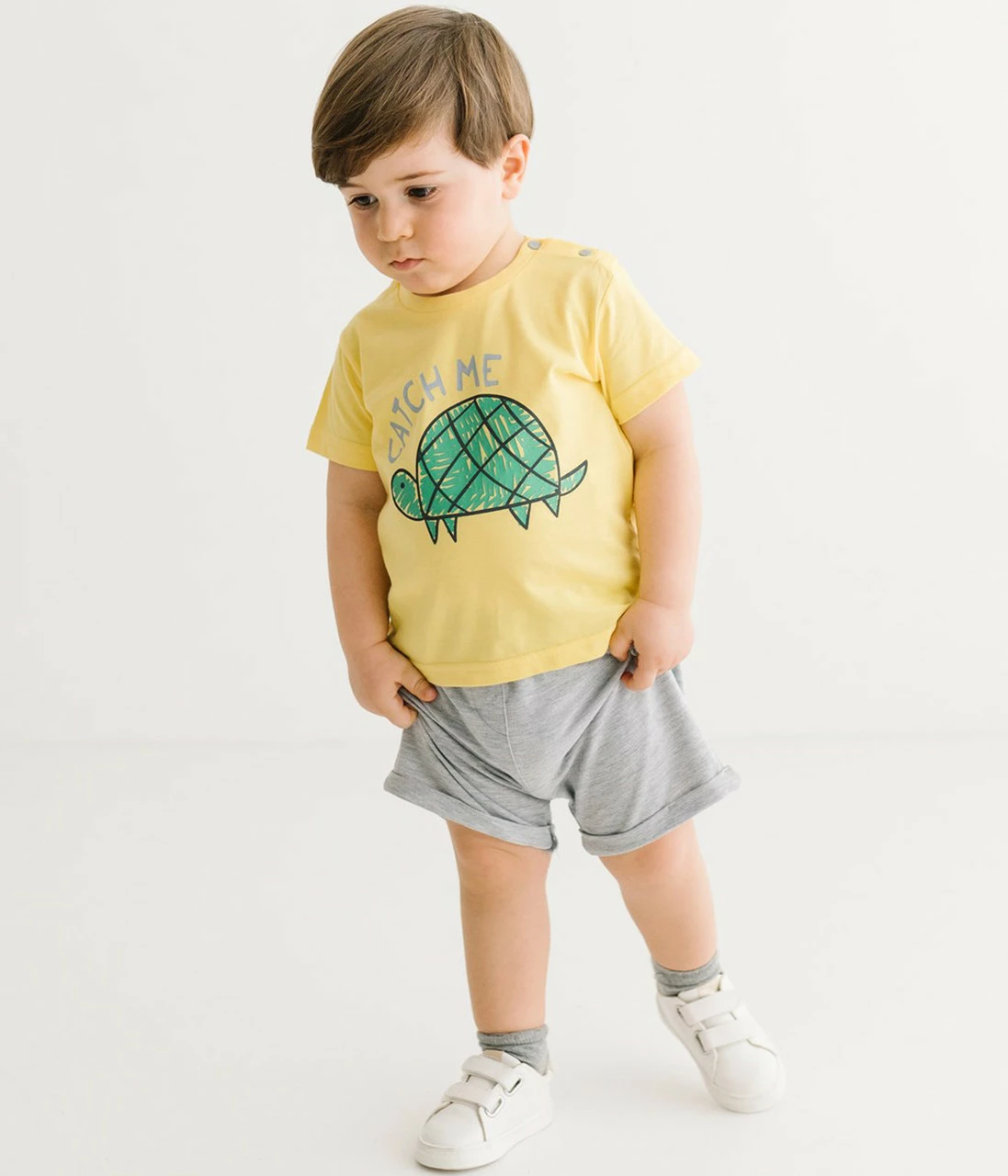 Костюм (футболка, шорты) 68-74 см (6-9 мес) Panolino PL17521 Серо-желтый 8691109879059