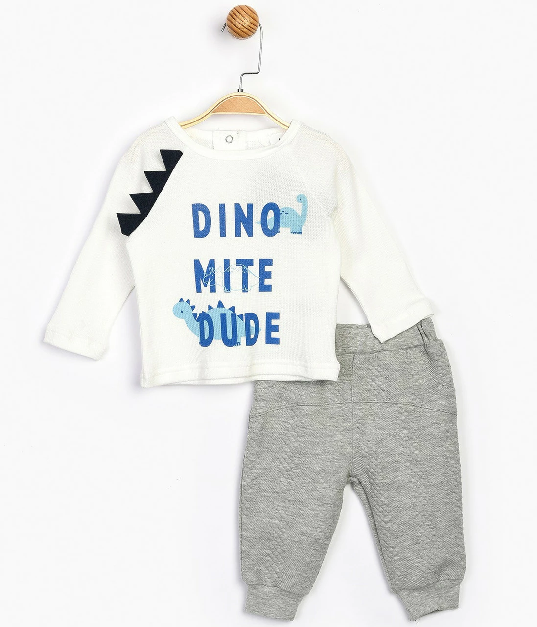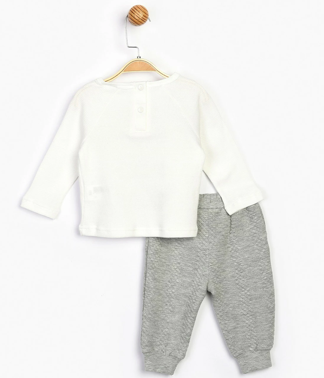 Спортивный костюм (лонгслив, штаны) 80-86 см (12-18 мес) Panolino PL16351 Бело-серый 8691109864284