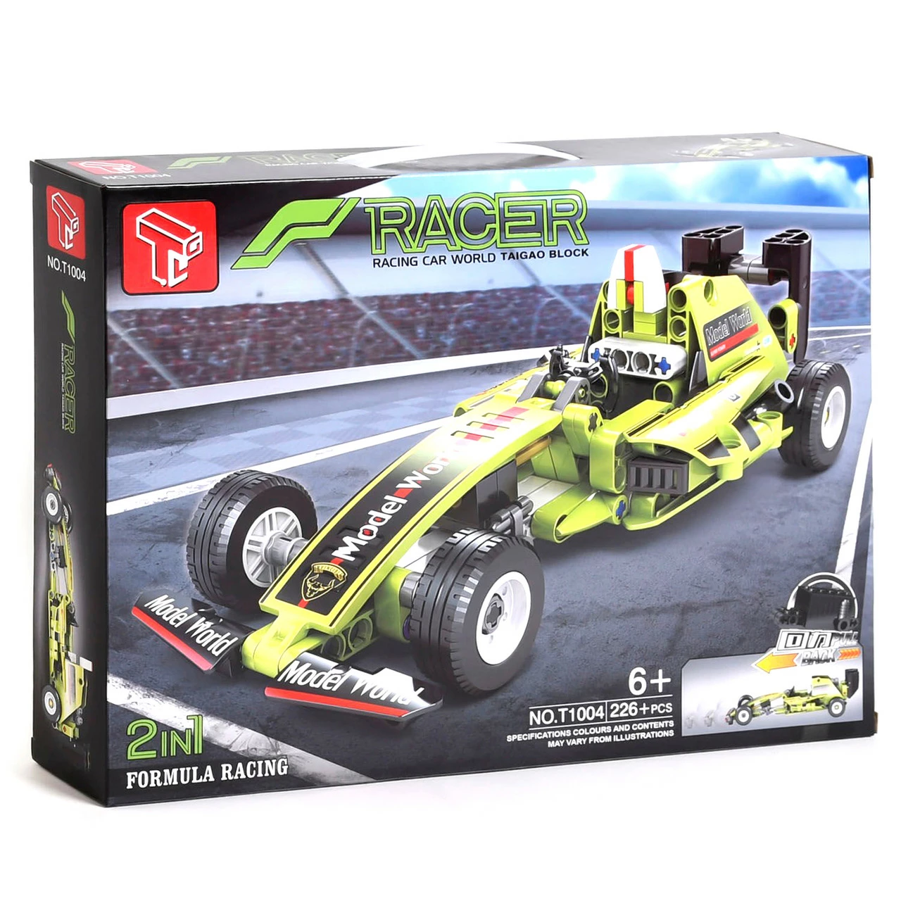 Особенность модели - инерция. Конструктор от Kimi - это уникальная модель с вариативностью сборки 2 в 1! В наборе 226 деталь из которых ребенок соберет точную копию гоночного автомобиля Формулы1. Болид выполнен в черно-зеленом цвете с белыми вставками и наклейками по всему корпусу. Собирается гоночный автомобиль за 53 шага. Для лучшего сцепления с дорогой шины выполнены из резины с протекторным рисунком, а задние колеса оборудованы инерционным механизмом. Главная особенность конструктора - это его вариативность сборки. Комплектация набора: