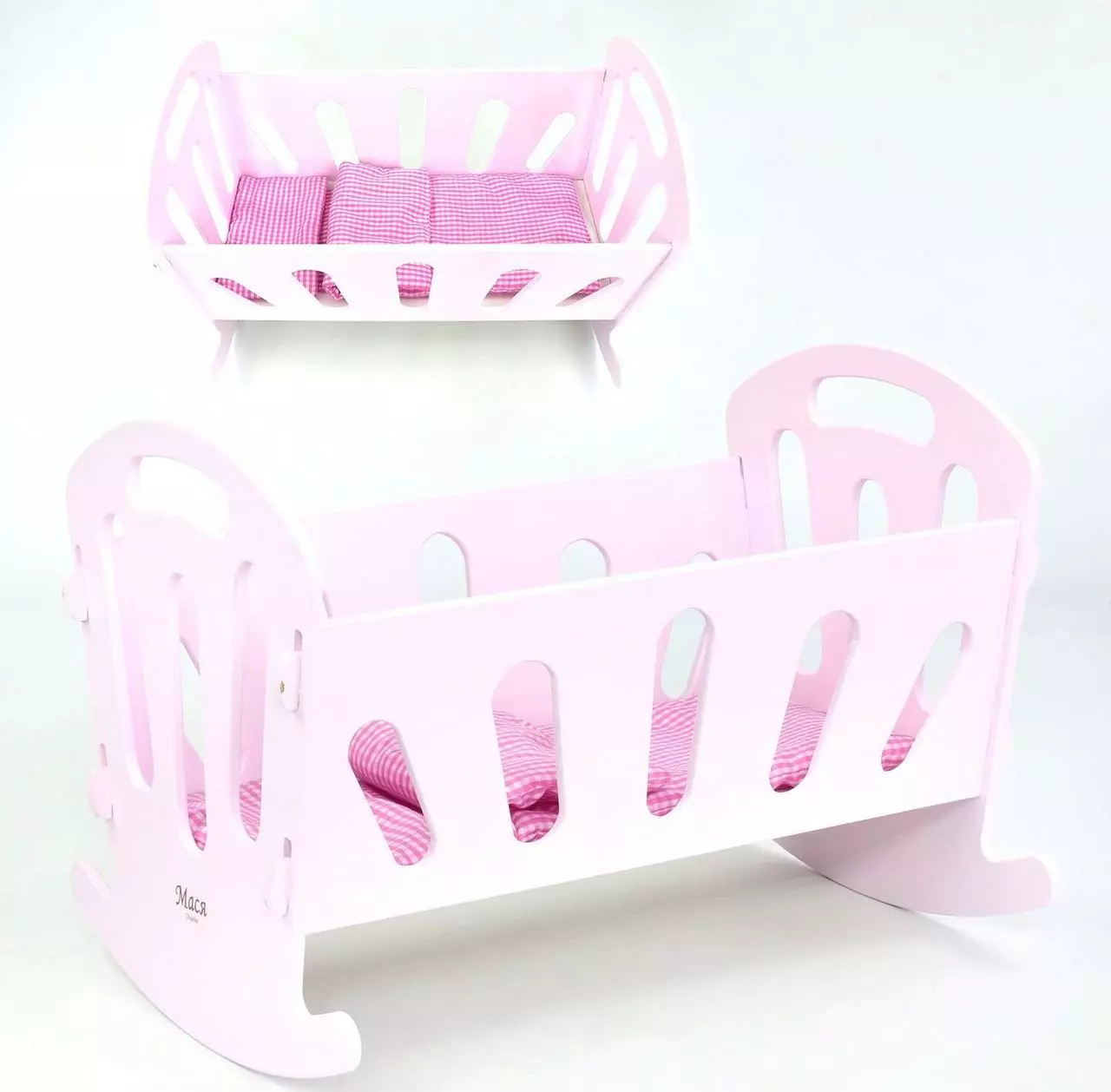 Кроватка Мася это деревянная люлька, выполненная в нежно-розовом