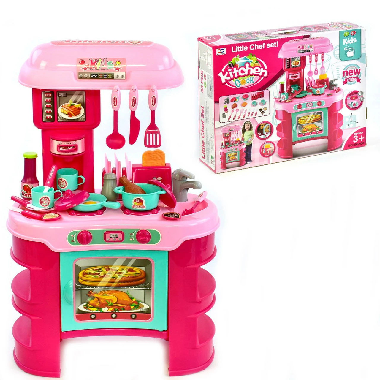 Кухня с набором посуды Kimi со звуковым и световым эффектом Розовый 6975434380483