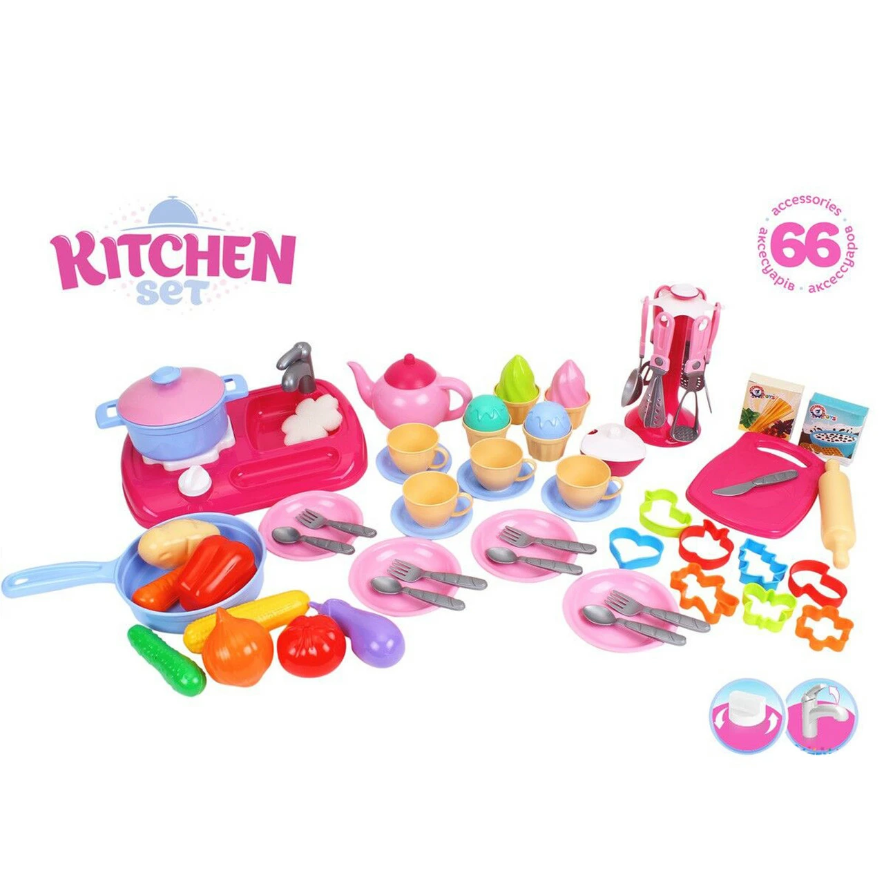 игрушечной мойке с краном и подвижной ручкой. Игрушечная кухня с