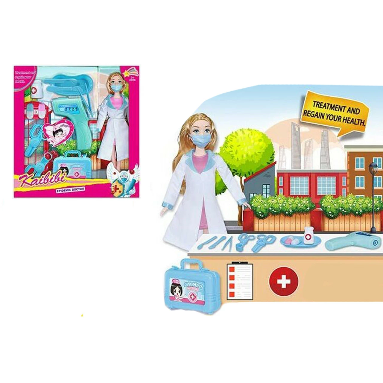 чемодан. Длинноволосая кукла-медсестра обладает обаятельной улыбкой. Одета она в розовое платье и белый врачебный халат. Также на лице надета маска, которая защитит от всевозможных вирусов. Рост куколки - 31 см.