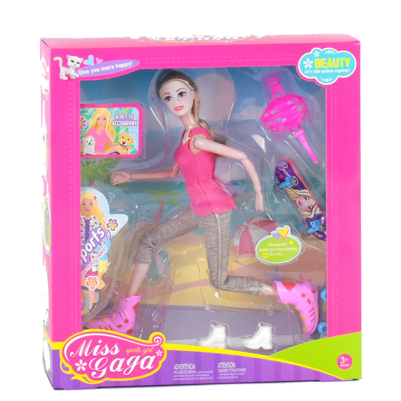 Кукла с аксессуарами 30 см Kimi скейтборд ролики Розовая 6975633430019