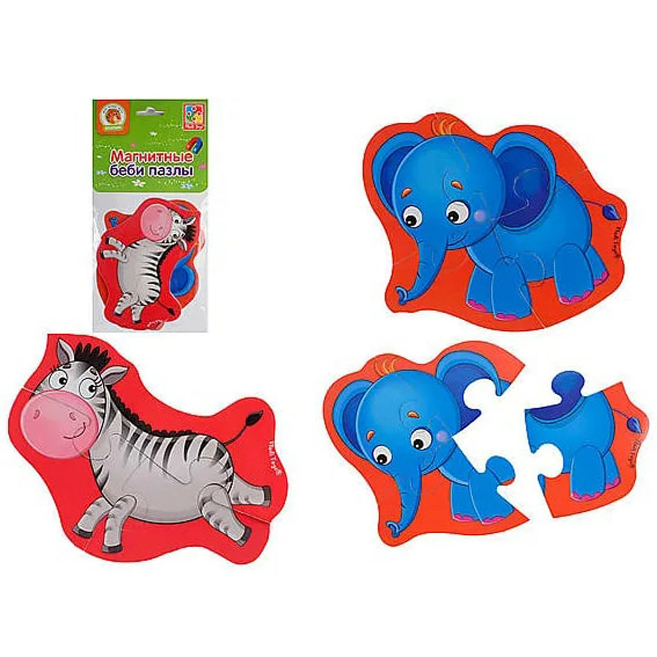 Магнитные мягкие пазлы Слон и Зебра Vladi Toys 6 элементов 4820195058855