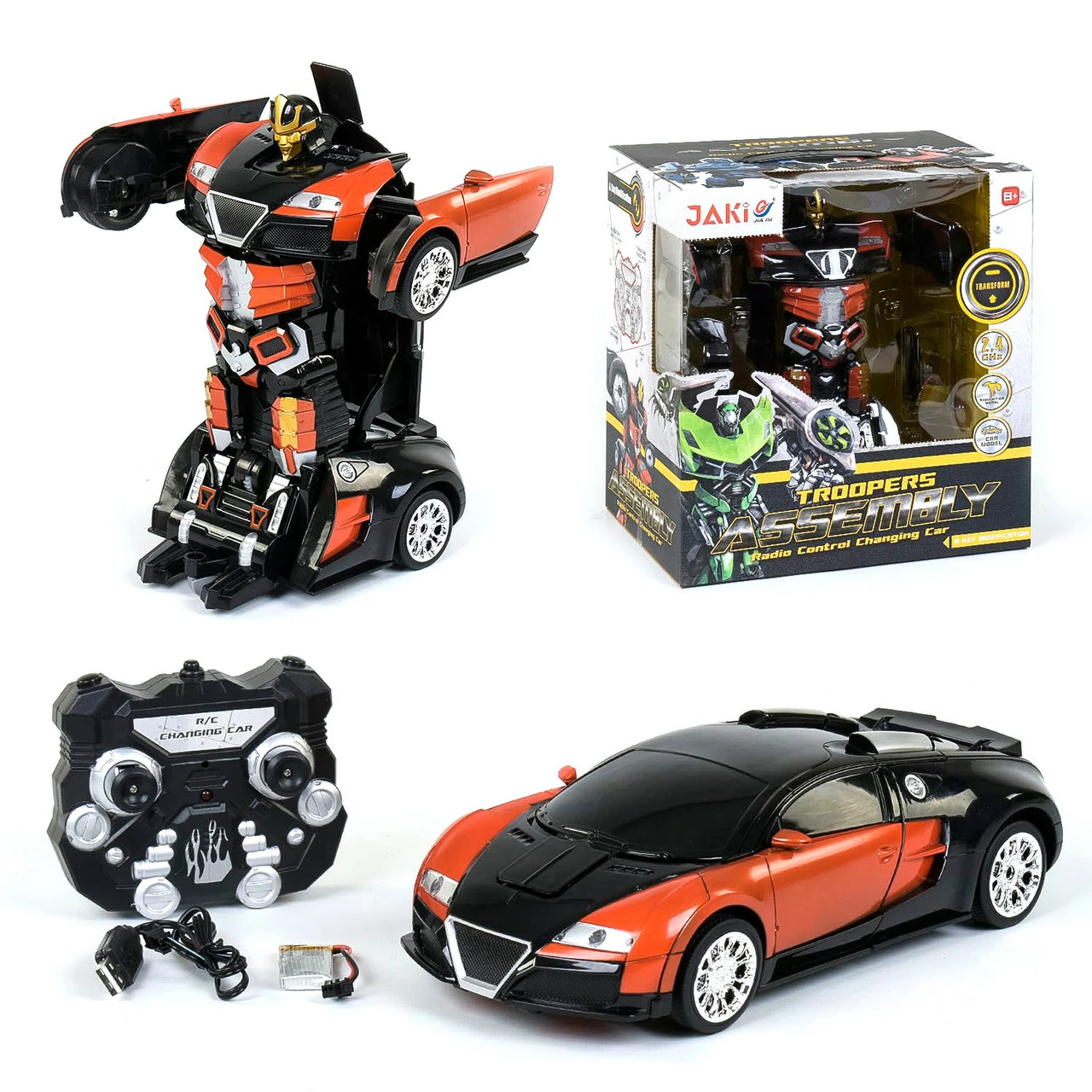 Машина-трансформер на радиоуправлении Kimi со световым и звуковым эффектом Черно-оранжевая 6975016080893