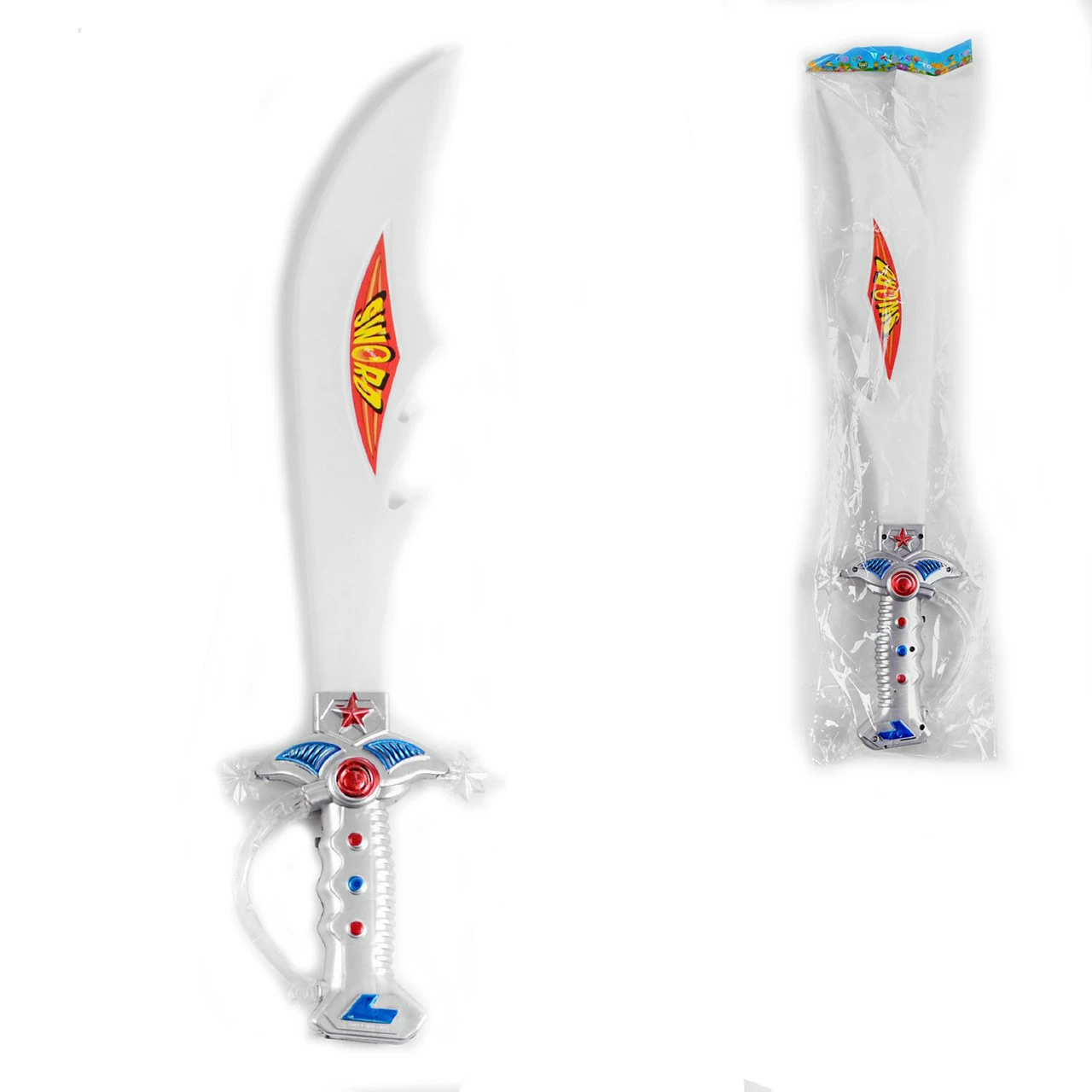 - реалистичные звуки боя на саблях. Сабля обладает простой, легкой и очень удобной конструкцией. Рукоять комфортно ложится в руку и оснащена защитной дужкой, которая обладает ярким световым эффектом. Игрушка работает от 3х батареек типа АА - в комплект не входят.