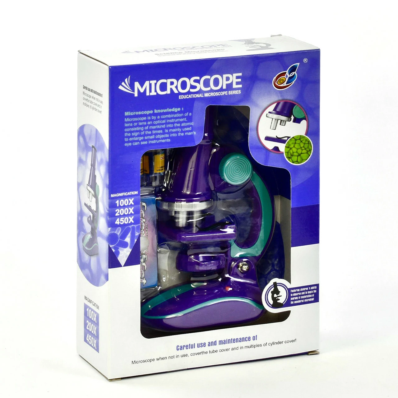 2шт (не входят в комплект) Микроскоп имеет: 3 объектива: 100Х,