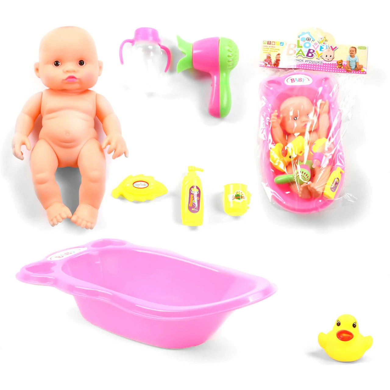 бутылочка с шампунем. Рост пупсика - 23 см.