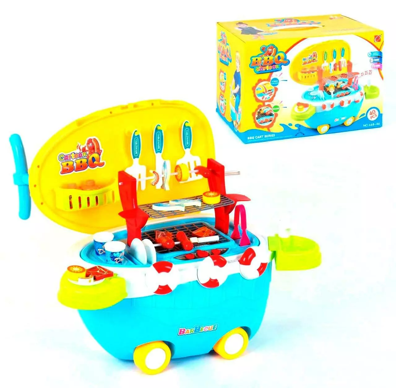 щипцами и игрушечной едой, как у настоящего барбекю. Такой