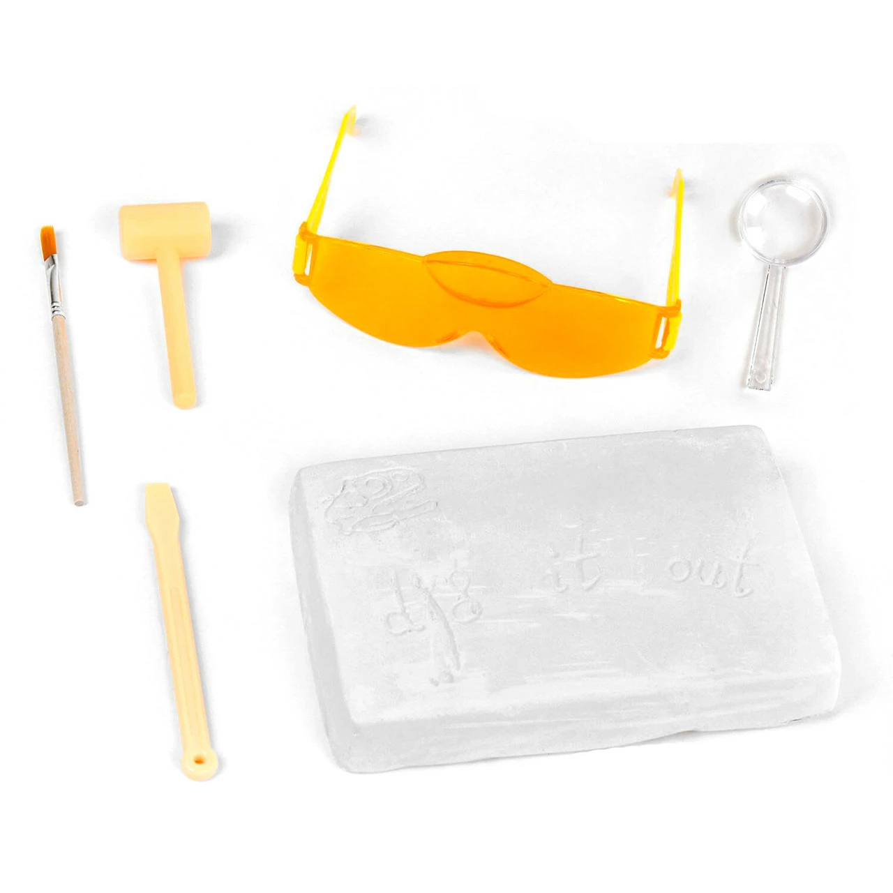 в игре есть камень для раскопок и приспособления, чтобы его разобрать; цель игры научить ребенка терпеливости и аккуратности в работе. Юные палеонтологи, вооружитесь терпением и жаждой к поиску сокровищ. Набор готов бросить Вам вызов. Сможете ли Вы отыскать останки давно ушедших существ А если да, то хватит ли Вам усидчивости собрать воедино весь скелет и воссоздать образ зверя далекой эпохи. Комплектация: