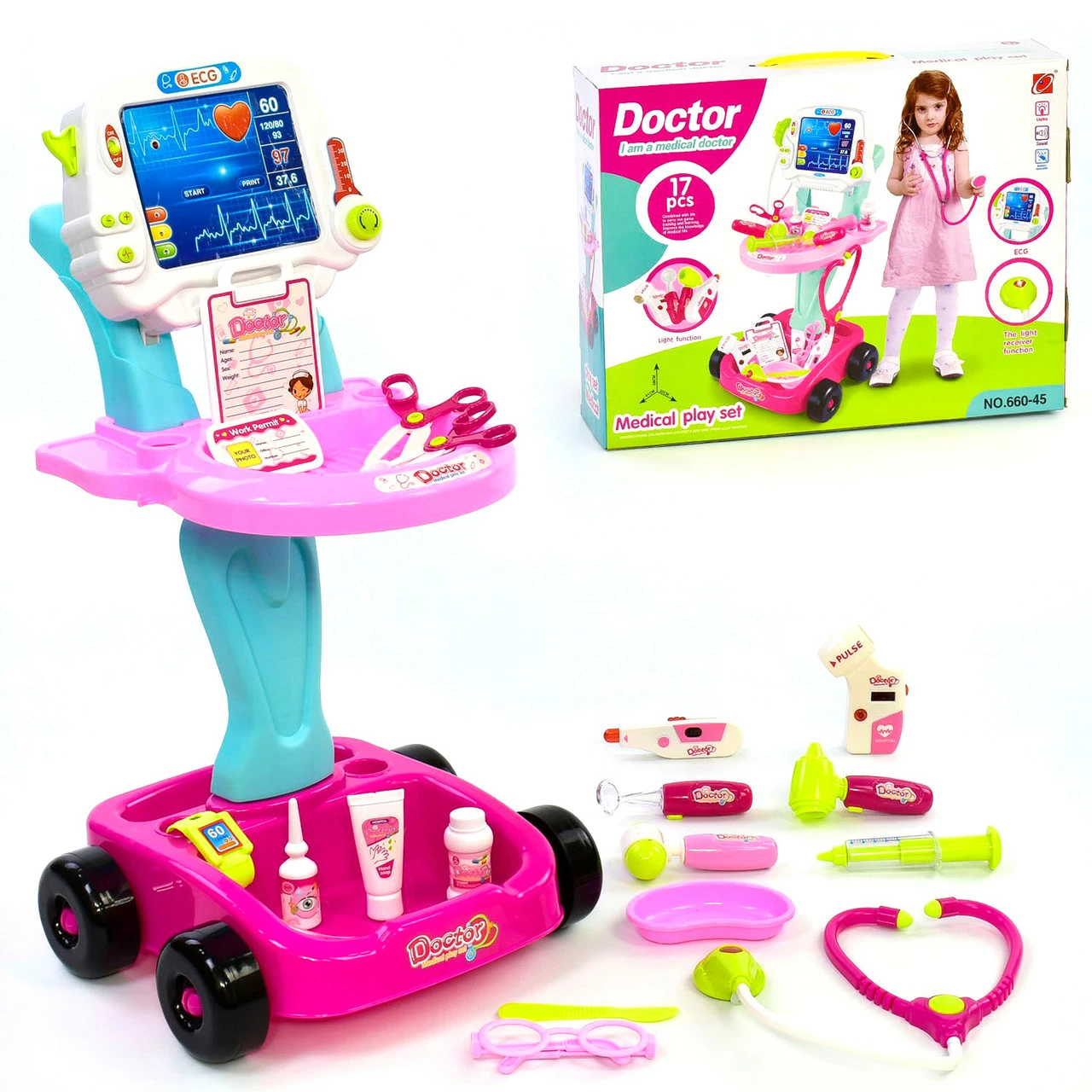 инструментов (17 шт), среди которых малыш найдет: стетоскоп,