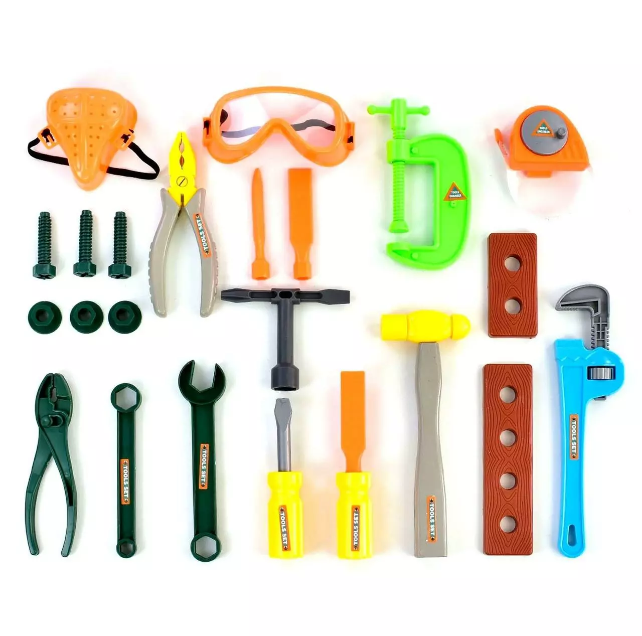 молоток, торцевой ключ, плоскогубцы, болты, гайки, столярные