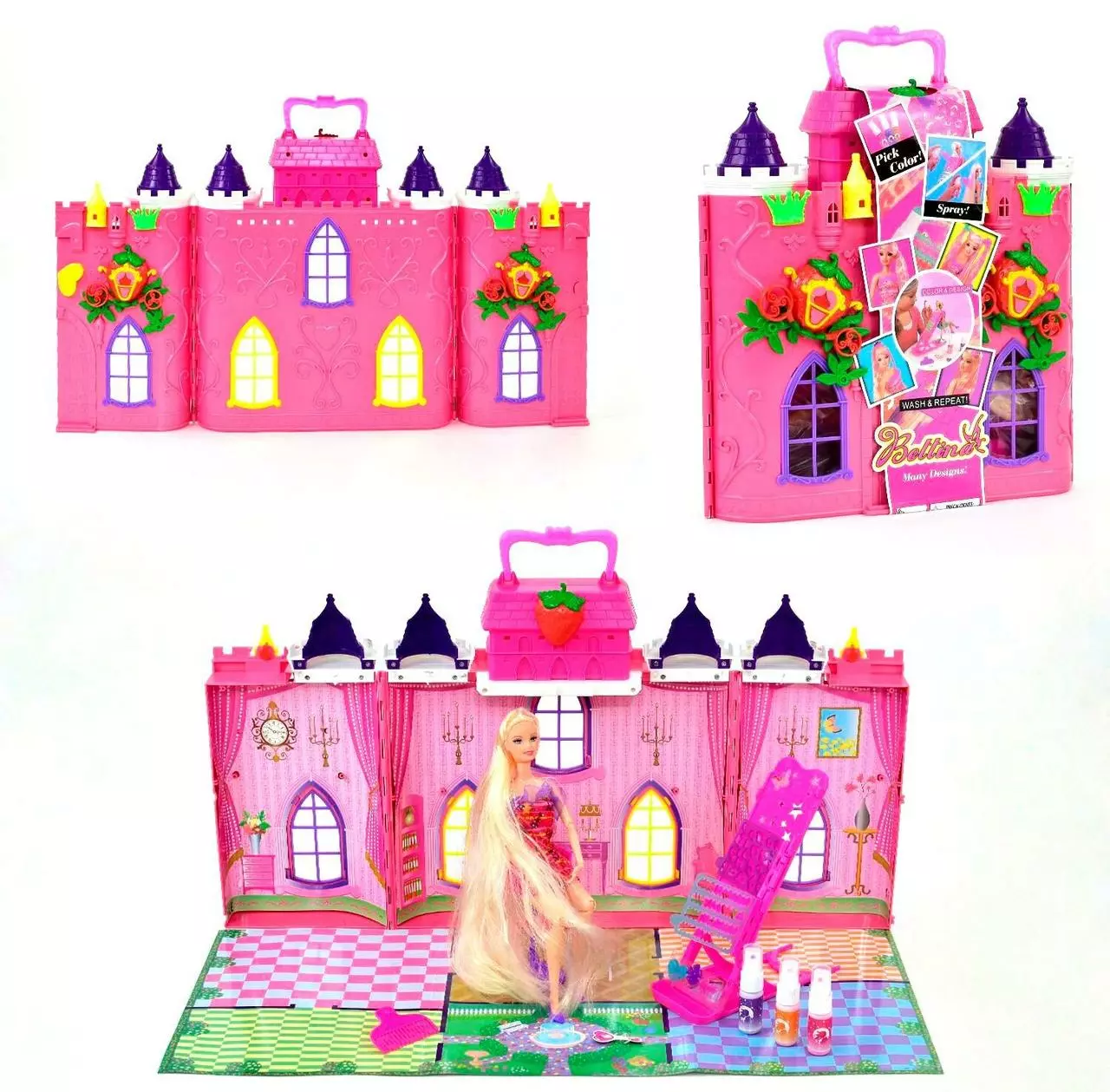 игрушек в одной (кукольный домик, набор парикмахера и куколка)