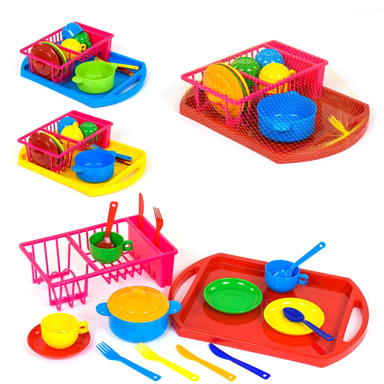 В комплект помимо игрушечной посуды имеется также симпатичная