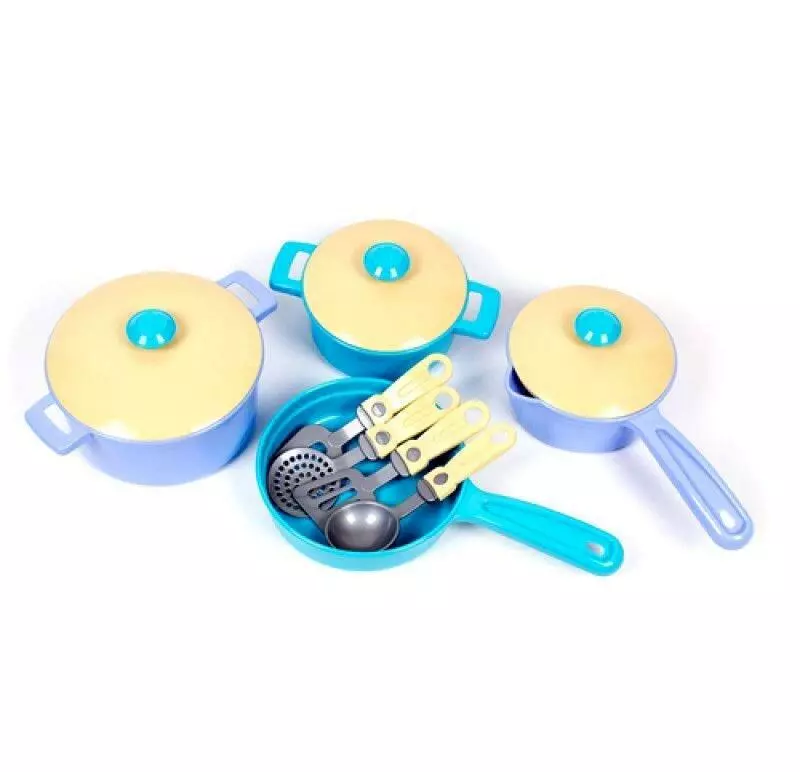 Набор игрушечной посуды в современной цветной гамме. Всего в
