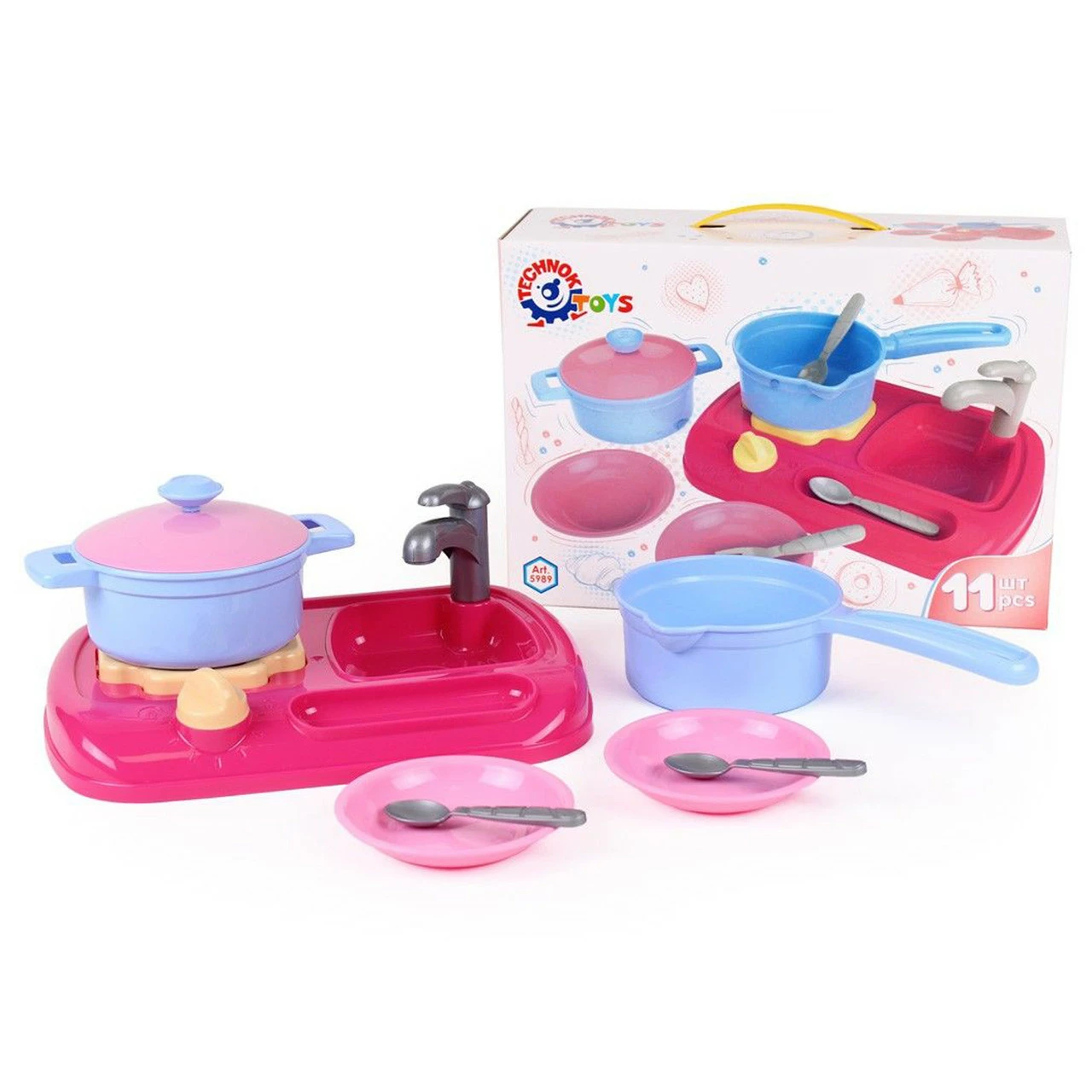 сотейник, крышка, ложки, вилки и тарелки по 2 шт. Игрушка для детей